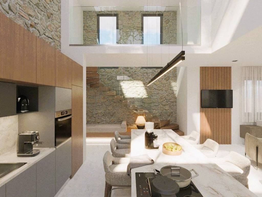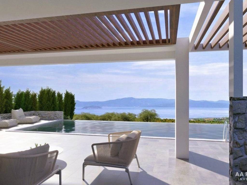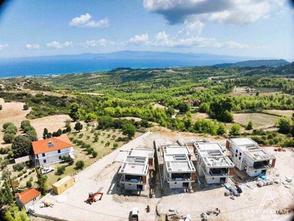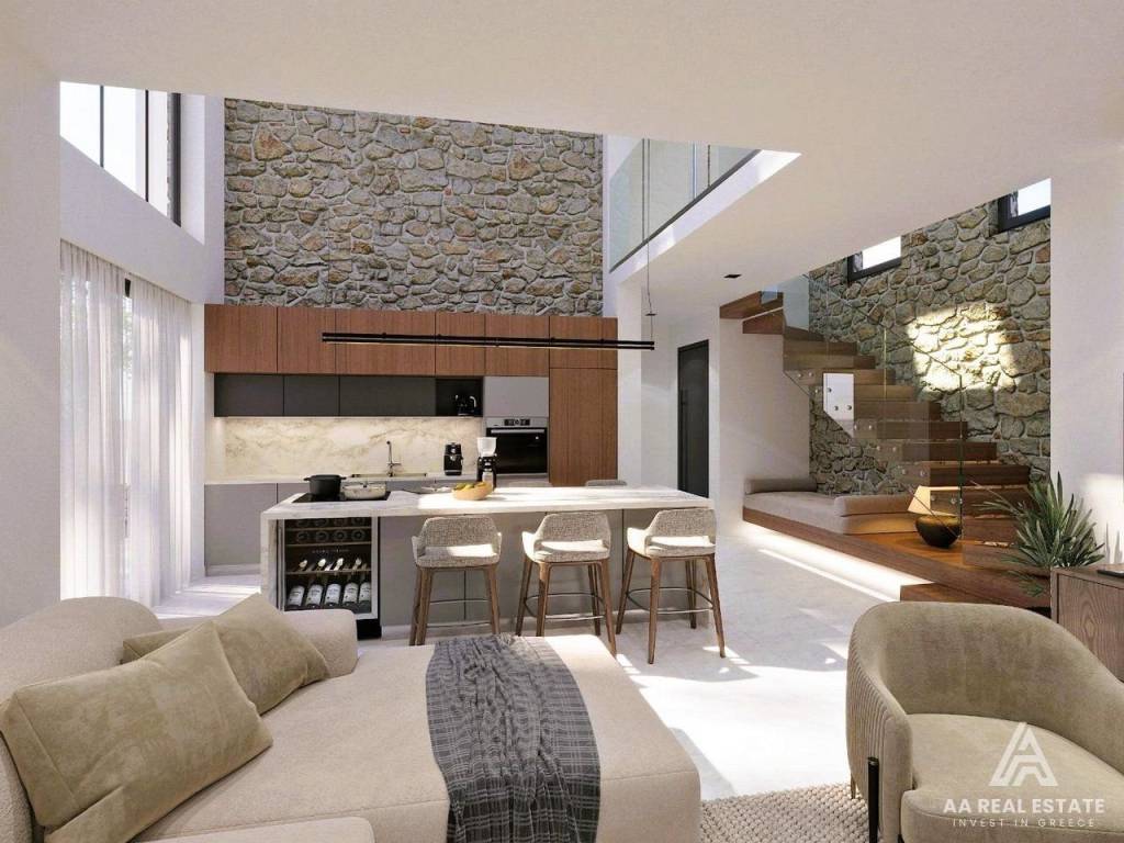 AGIA PARASKEVI HALKIDIKI-FOR SALE newly built luxurious, fully equipped and furnished, wonderful bright modern maisonettes with excellent panoramic sea views from Thermaikos to Toroneos, with a private 36sqm pool in a complex of four houses. total area 125sqm. Each maisonette has its own fantastic infinity pool and 2 parking spaces and is located on a plot of 800 sq m, one of them has a plot of 1,500 sq m. with a private garden and gazebo, barbecues, It consists of two levels, three comfortable bedrooms, two bathrooms, (a third can be created) living room, kitchen, storage room, provision for Roof Garden for further enjoyment of the unique 360º view of the sea and the lush landscape. They are fully equipped and furnished, have underfloor heating, heat pump, solar water heater, alarm, air conditioning, modern double-glazed aluminum frames with screens, extra 5-ton water tank for full autonomy, The project will be delivered in August 2025 It is located 3 minutes from the sandy beach of Polychrono, within the residential area of ​​the village. One hour from Thessaloniki and the city's airport. It is an excellent choice for a holiday home and an investment, giving its residents the opportunity for wonderful holidays. At a distance of 2,500 meters from the coast, near the village of Agia Paraskevi. It is an excellent proposal for a residence and for exploitation due to the quality construction and the amenities that contribute to the high quality living of its residents. open parking spaces 2, distance from the beach 2500, number of floors in the building 2, painted, terace, type of glass duble, land surface 800, storage surface 10, energy class A+, build in BBQ, floor heating, furnished, indoor lader, solar water heater, view, garden, air conditioning, frames aluminium, equiped, newly built, swimming pool, luxury home, security door, access asphalt, disabled access, facade, insect screen, alarm, flooring type tile, garden type private garden, bright