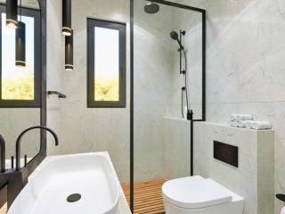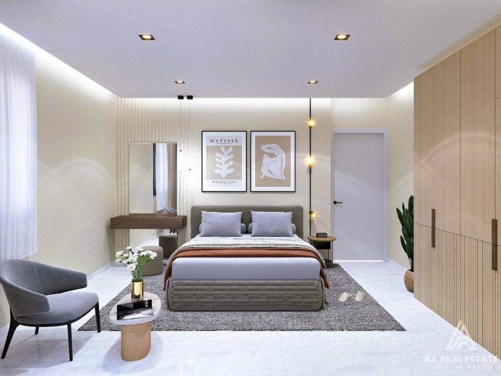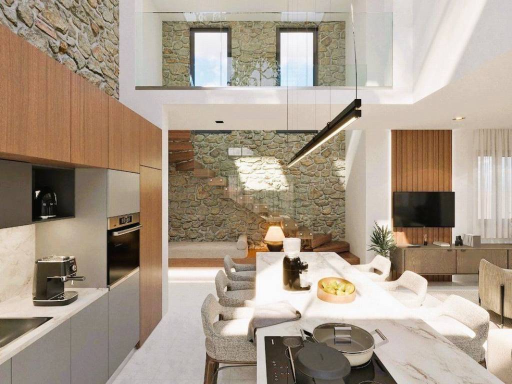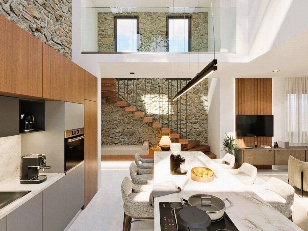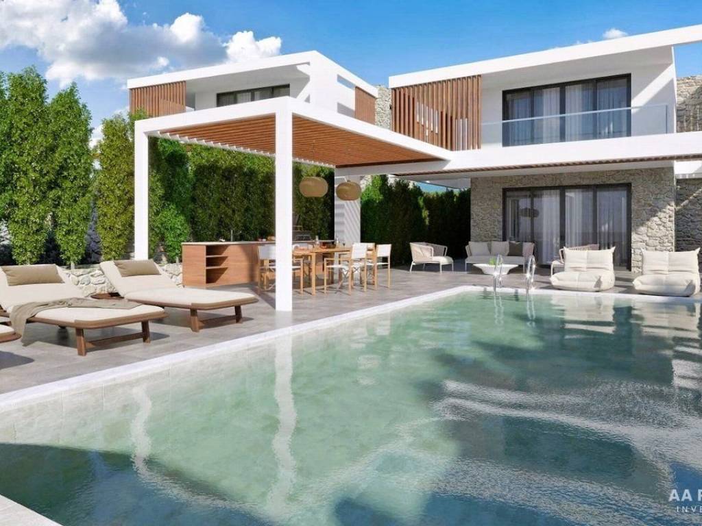 AGIA PARASKEVI HALKIDIKI-FOR SALE newly built luxurious, fully equipped and furnished, wonderful bright modern maisonettes with excellent panoramic sea views from Thermaikos to Toroneos, with a private 36sqm pool in a complex of four houses. total area 125sqm. Each maisonette has its own fantastic infinity pool and 2 parking spaces and is located on a plot of 800 sq m, one of them has a plot of 1,500 sq m. with a private garden and gazebo, barbecues, It consists of two levels, three comfortable bedrooms, two bathrooms, (a third can be created) living room, kitchen, storage room, provision for Roof Garden for further enjoyment of the unique 360º view of the sea and the lush landscape. They are fully equipped and furnished, have underfloor heating, heat pump, solar water heater, alarm, air conditioning, modern double-glazed aluminum frames with screens, extra 5-ton water tank for full autonomy, The project will be delivered in August 2025 It is located 3 minutes from the sandy beach of Polychrono, within the residential area of ​​the village. One hour from Thessaloniki and the city's airport. It is an excellent choice for a holiday home and an investment, giving its residents the opportunity for wonderful holidays. At a distance of 2,500 meters from the coast, near the village of Agia Paraskevi. It is an excellent proposal for a residence and for exploitation due to the quality construction and the amenities that contribute to the high quality living of its residents. open parking spaces 2, distance from the beach 2500, number of floors in the building 2, painted, terace, type of glass duble, land surface 800, storage surface 10, energy class A+, build in BBQ, floor heating, furnished, indoor lader, solar water heater, view, garden, air conditioning, frames aluminium, equiped, newly built, swimming pool, luxury home, security door, access asphalt, disabled access, facade, insect screen, alarm, flooring type tile, garden type private garden, bright