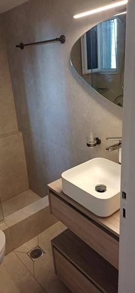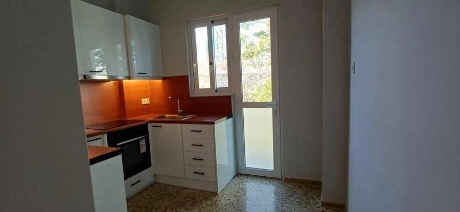 Moschato, Centre - Apartment 50sqm bedroom, levels 1, 2nd, renovated, year built 1975, renovation year 2025, energy class A+, living room, hall, kitchen, heating type: autonomous (air condition), quiet, luminous, park view, frontage, painted, solar heater, tents, elevator, loft storage, aluminum frames, double glazed windows, door screen, marble floors, secure door, residential zone.