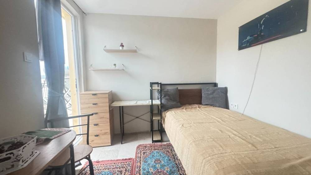 This property comes fully furnished including electronic devices (bed, wardrobe, living room table, kitchen table, sofa, hall furniture, desk, washing machine, built in oven, refrigerator) with ceramic tiles flooring.