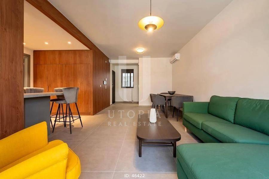 Patisia, Gkrava - Apartment 111sqm unfurnished, bedrooms 3, levels 1, 4th, newly built, year built 2023, energy class A+, living room, hall, kitchen, bathroom, wc, heating type: autonomous (natural gas), air condition, parking ground floor, quiet, dual aspect apartment, luminous, corner, unobstructed view view, frontage, storage space, balconies, large balconies, tents, elevator, aluminum frames, double glazed windows, ceramic tiles floors, separate kitchen, night electricity discount rate, secure door, alarm, pets allowed, within city plan, residential zone, north-eastern orientation, access from asphalt, close to market (up to 1000m).