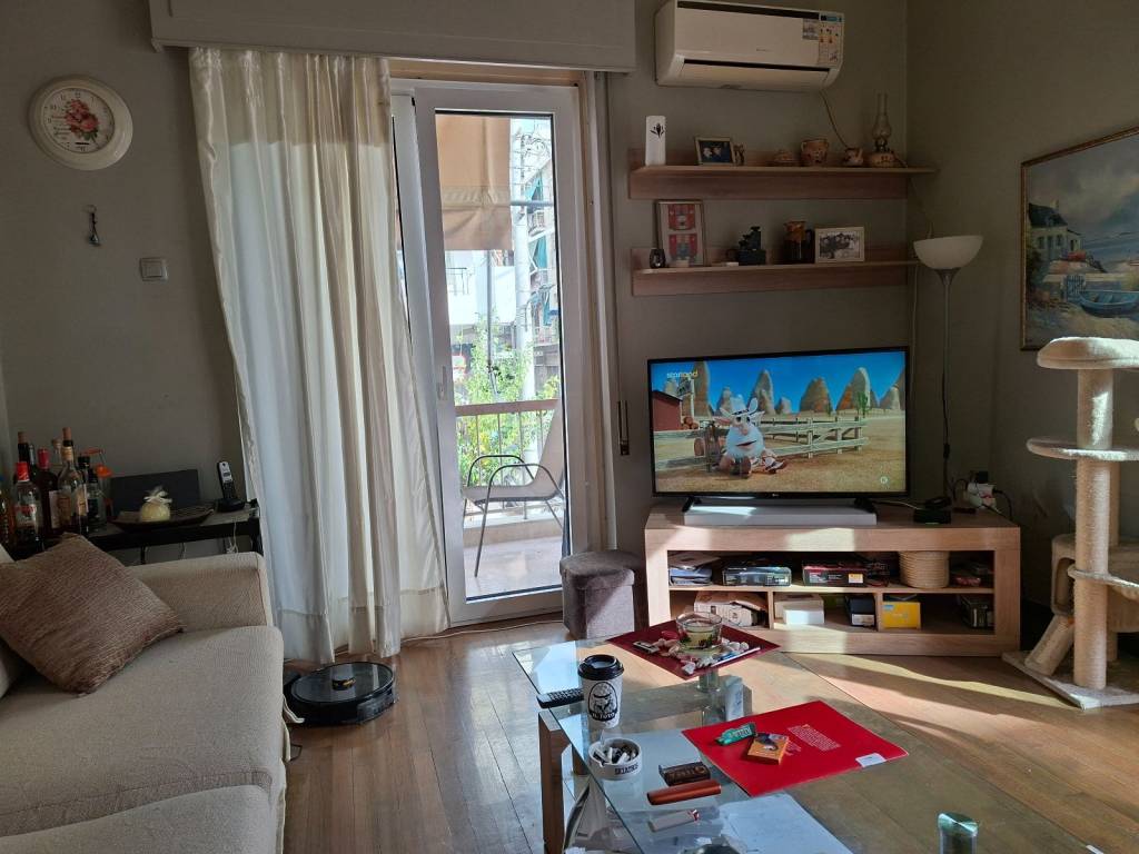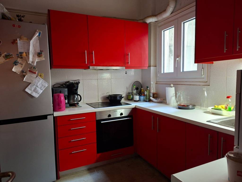 NEOS KOSMOS, 1st floor apartment for sale. This is an apartment building consisting of 5 floors, built in 1975, in a very good area, quiet neighborhood, large street with market, just 2 streets from A.Syggrou Avenue and 1 km. from the FIX metro station. The apartment for sale has been renovated in 2016 and aluminum doors, new kitchen, bathroom, security door have been installed. It consists of a reception area, large living room - sitting room - dining room, 2 bedrooms, closed kitchen, bathroom, utility room for laundry. It is corner with a large opening in front of both streets. It also has awnings and 3 a/c. The heating is central oil which is turned on at least 2 times a day. EXCLUSIVELY from IT GROUP REAL ESTATE.