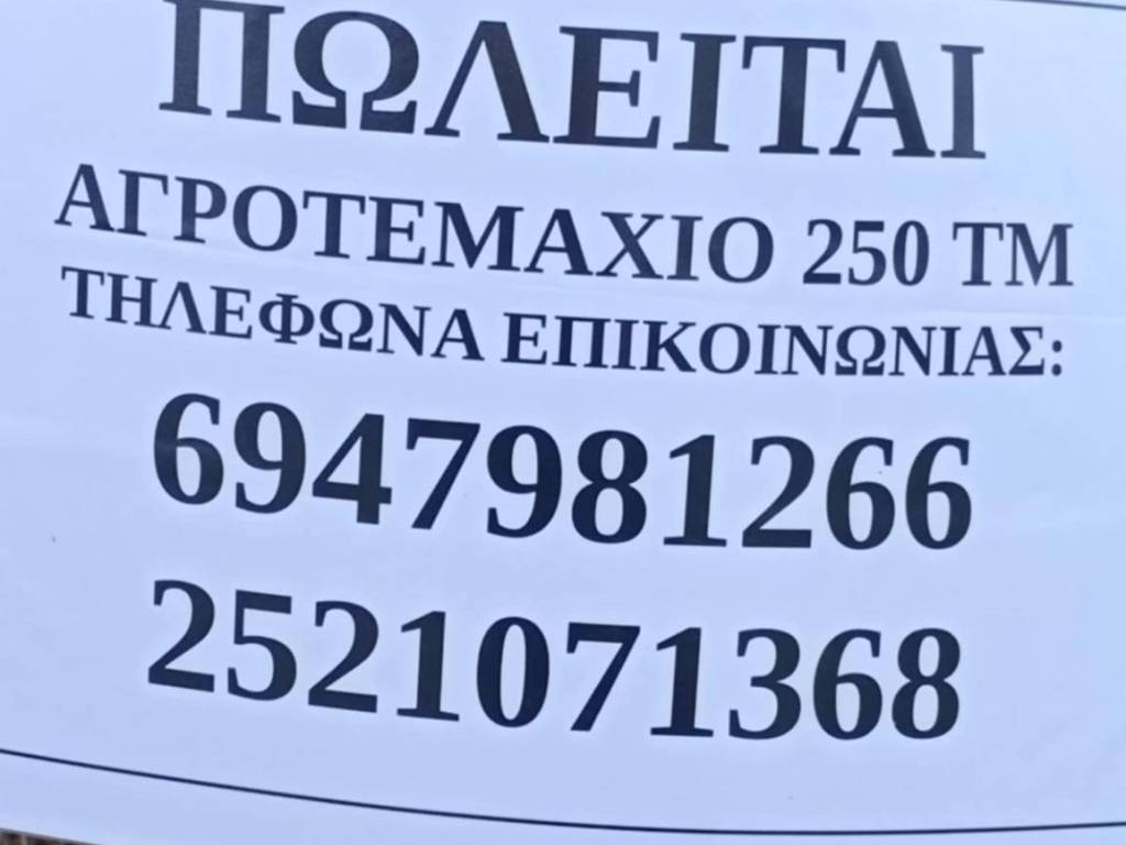 Πρόκειται για 250 τ.μ σε αγροτεμάχιο εξ αδιαιρέτου. Οι συντεταγμένες του αγροτεμαχίου είναι οι εξής: X: 421209.094 και Y:4463279.412 και η διεύθυνση Φιλίππου και Μακεδονίας όπως φαίνεται και στις φωτογραφίες. Περισσότερες πληροφορίες μπορούν να δοθούν τηλεφωνικά.