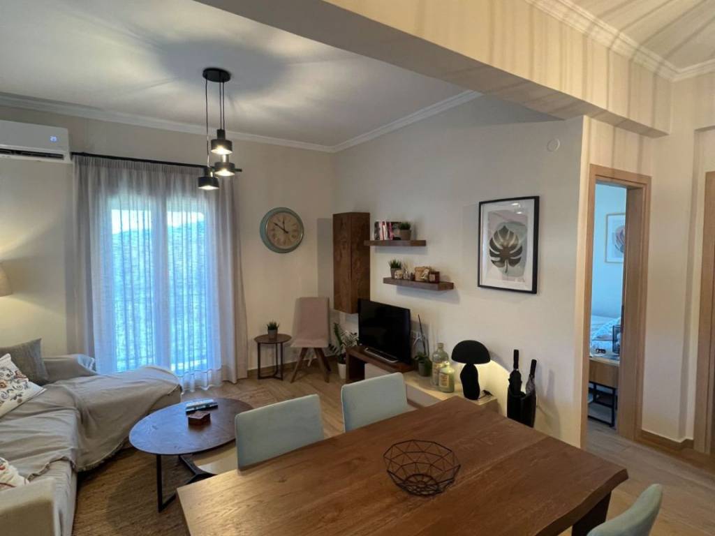 Apartment for rent, 60 sq.m., first floor, fully renovated, furnished, and fully functional, with private parking space. Available for the summer season (May – October). The apartment is located on the main Velonades – Sidari road. All bills included in the price -electricity and water .
