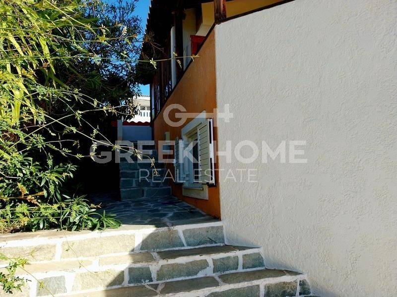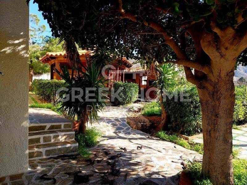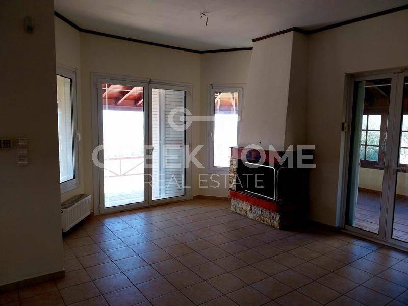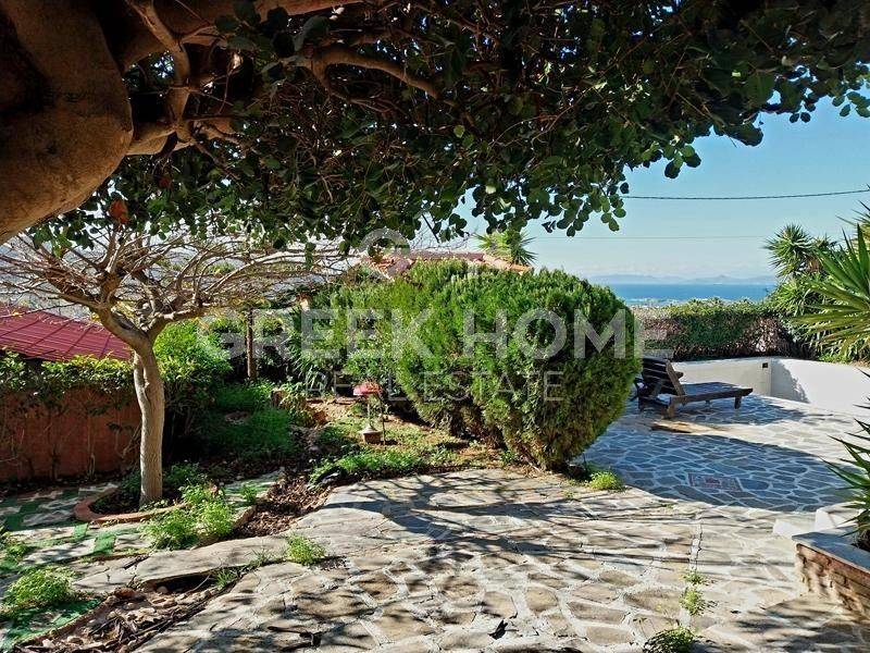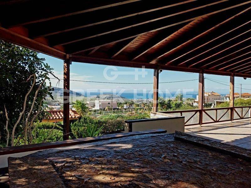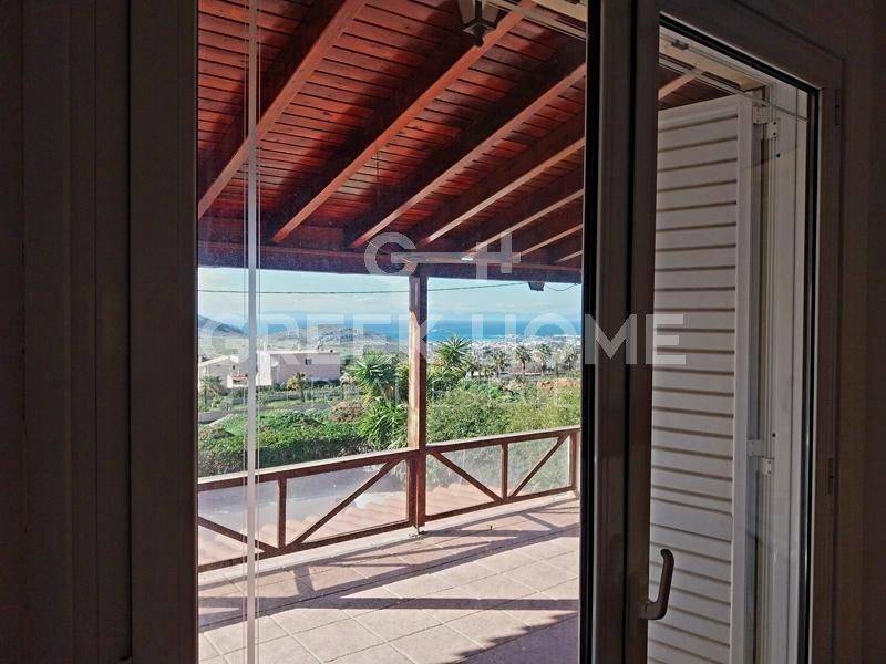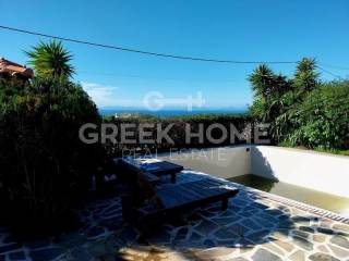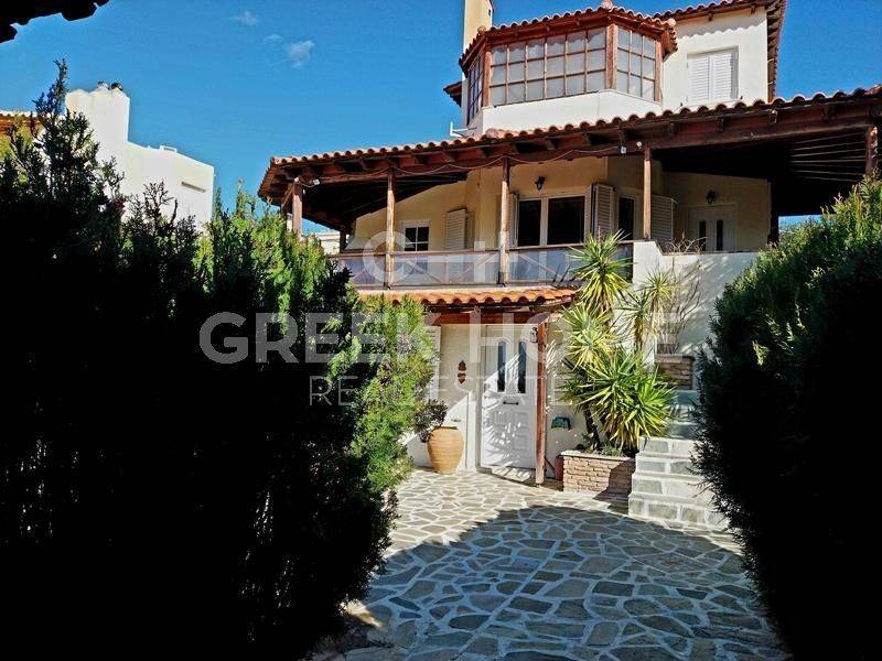 Kalyvia Thorikou, Lagonisi - Detached House 180sqm plot 1000sqm, bedrooms 4, levels 3, ground floor - 1st - 2nd, very good condition, year built 2000, energy class D, 2 living rooms, 2 kitchens, 2 bathrooms, wc, heating type: autonomous (oil), air condition, parking covered, quiet, dual aspect apartment, luminous, corner, sea view, fireplace, large balconies, garden, aluminum frames, double glazed windows, door screen, ceramic tiles floors, private pool, internal staircase, barbeque, guest house, east-southern orientation.