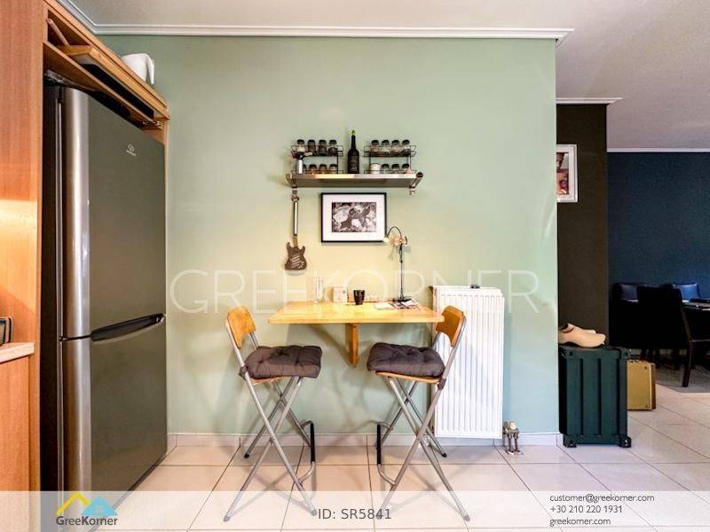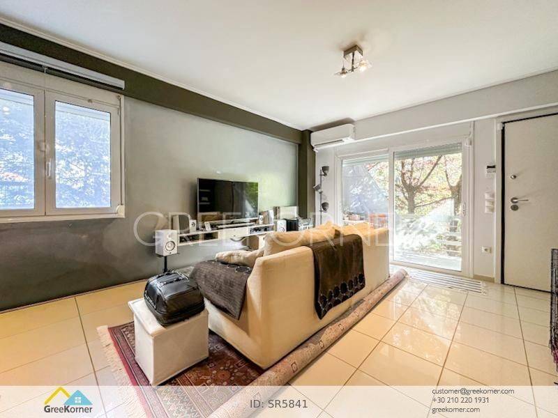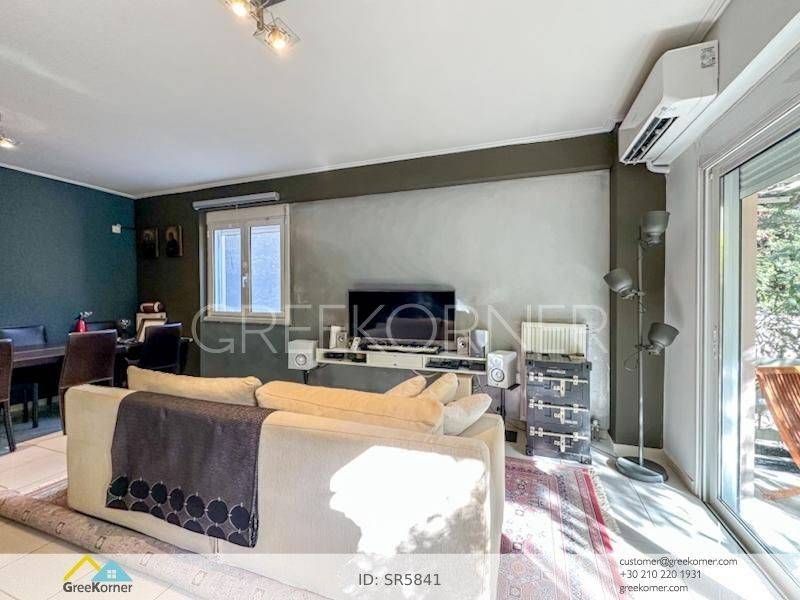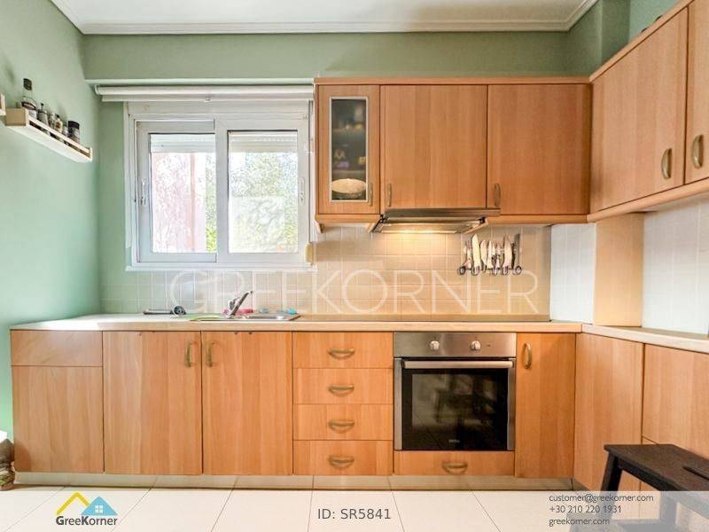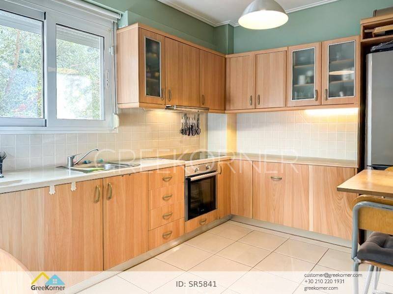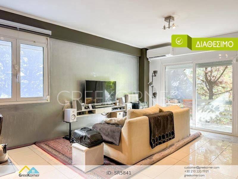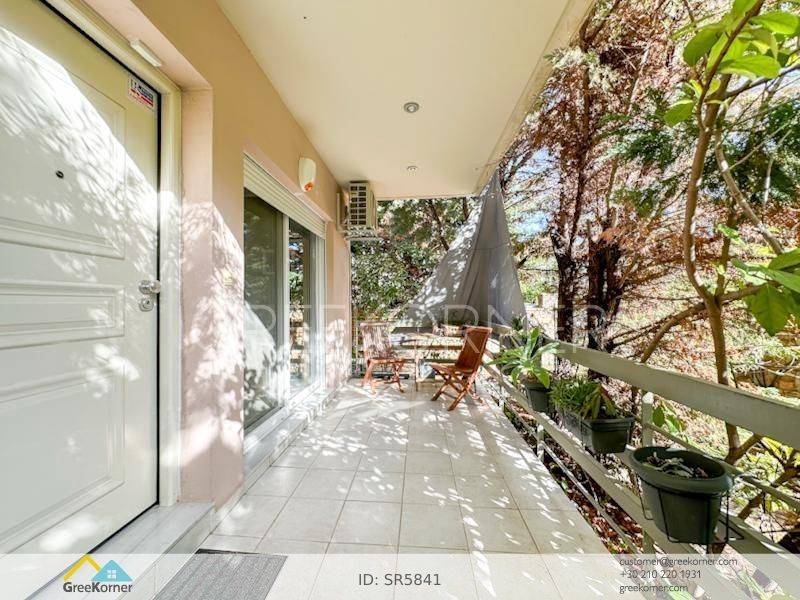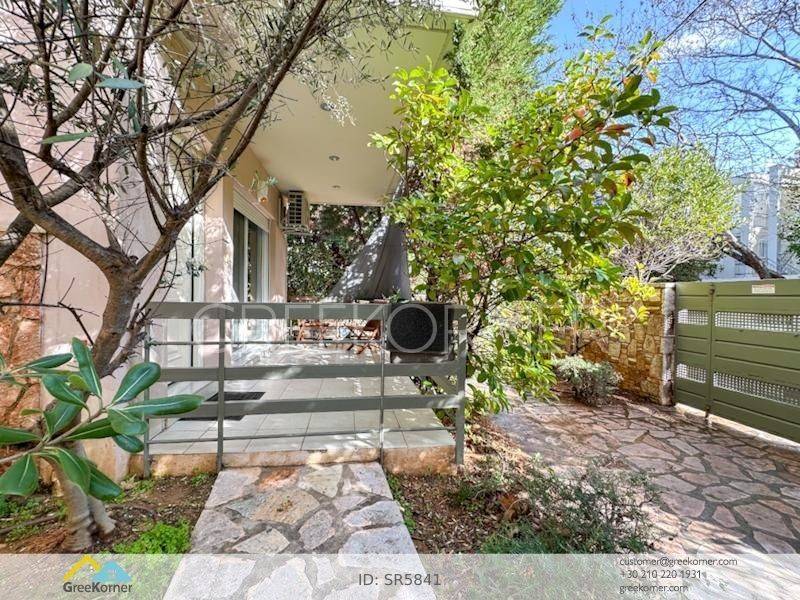 Kifissia, Politia - Apartment 80sqm plot 1150sqm, bedrooms 2, master bedroom, levels 1, ground floor - raised ground floor, excellent condition, year built 2009, energy class C, living room, kitchen, bathroom, heating type: autonomous (oil), air condition, a/c type splits, quiet, dual aspect apartment, luminous, frontage, painted, storage space 10sqm, boiler, balconies, large balconies, balcony 10sqm, tents, loft storage, garden, built in appliances, aluminum frames, double glazed windows, door screen, marble floors, office, three phase electricity, night electricity discount rate, secure door, alarm, video doorbell, luxurious, cloakroom, internet, within city plan, residential zone, eastern orientation, access from asphalt, close to bus stop (up to 100m), close to market (up to 200m), close to school (up to 500m).