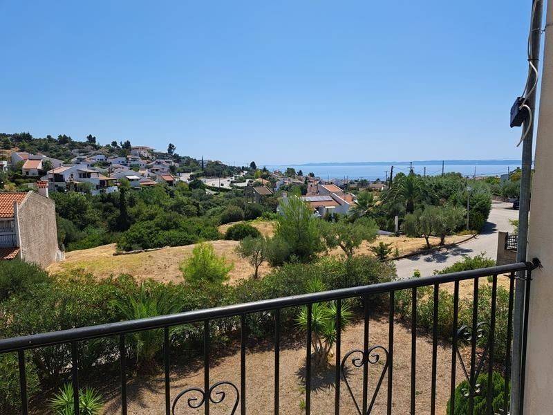 Sithonia, Gerakini - Holiday Home 137sqm bedrooms 3, excellent condition, year built 2003, energy class D, living room, kitchen, bathroom, wc, heating type: autonomous (electricity), air condition, parking open space, quiet, dual aspect apartment, luminous, panoramic view, frontage, storage space, fireplace, large balconies, balcony 30sqm, tents, garden, garden 250sqm, double glazed windows, door screen, ceramic tiles floors, without common charges, secure door, pets allowed, residential zone, east-southern orientation, access from asphalt, price is negotiable, investment property, close to sea (up to 500m).