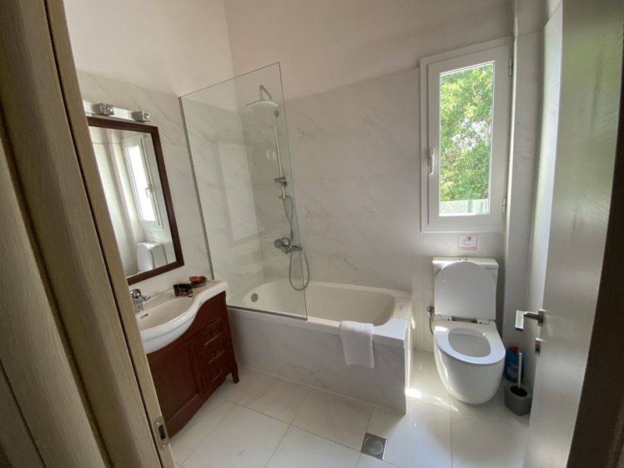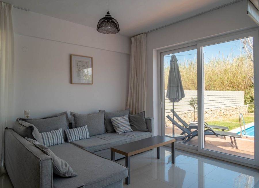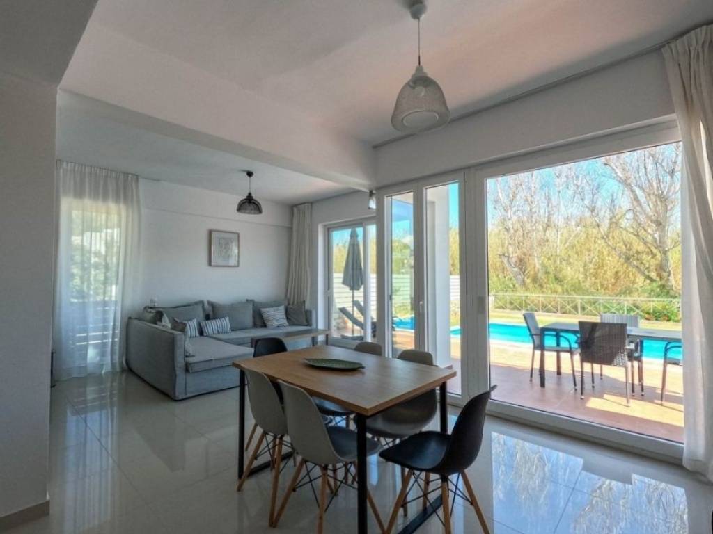 Ag. Apostoloi – Nea Kydonia In the popular area of Ag. Apostoli, which is a magnet for domestic and foreign visitors, due to the two beautiful, organized beaches with sand and shallow waters and the park with the wonderful paths that are ideal for walking, a detached house it is offered for sale fully renovated at 2021, with a total area of 101,10m2, within a private plot with an area of 266,84m2. This residence is developed on two levels, which are connected via a staircase and consists of: On the first level, a spacious open plan area with a living room and a dining room, a functional kitchen with built-in electrical appliances, a wc, comfortable verandas, direct access to the courtyard and the swimming pool. On the second level, 2 comfortable bedrooms with built-in wardrobes, a large bathroom, comfortable balconies. In addition, it has Energy-efficient aluminum frames with double glazing and screens Electrical appliances Monitoring system Air conditioning in all rooms Private swimming pool It is suitable for a permanent residence but also for exploitation through short-term lease. It is only 450 meters from the beach and only 3 kilometers from the center of Chania. Public and other amenities are within walking distance.