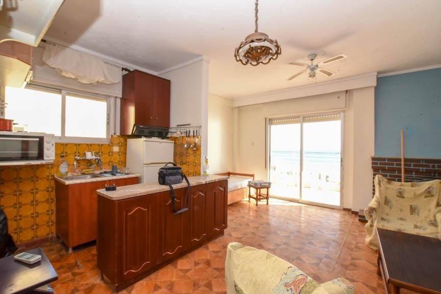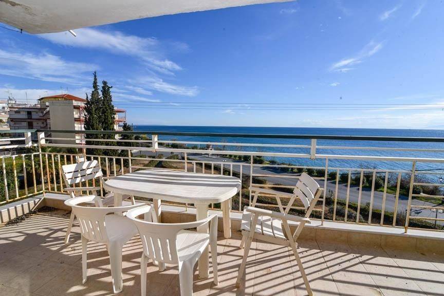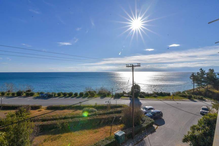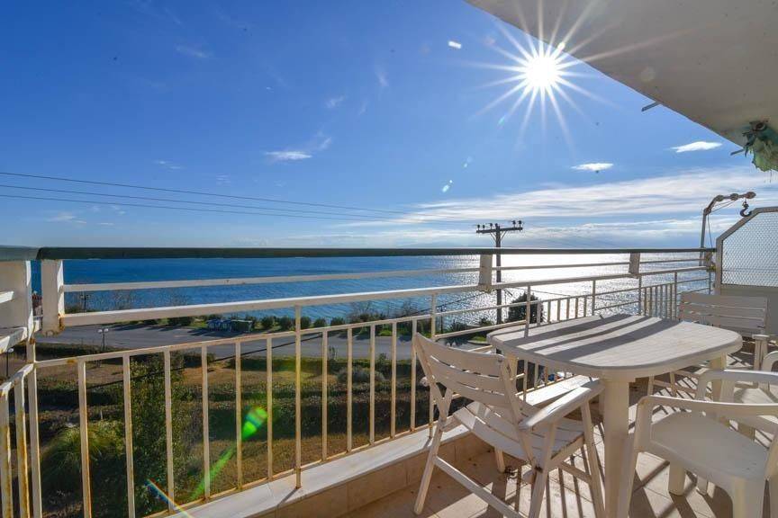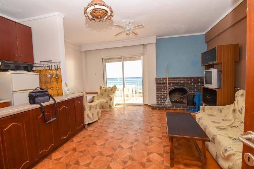 Apartment for rent in first line to the sea in Nea Kallikrateia Halkidiki. The property consists of two bedrooms, large living room with kitchen and bathroom. It has a comfortable balcony with an unlimited sea view. It is located just 300 m from the center of Kallikrateia. The apartment is rented for the season (May – September). For more information, call Kalogirou real estate office.