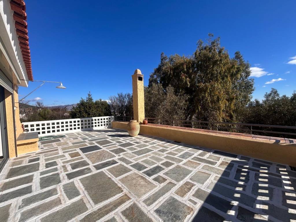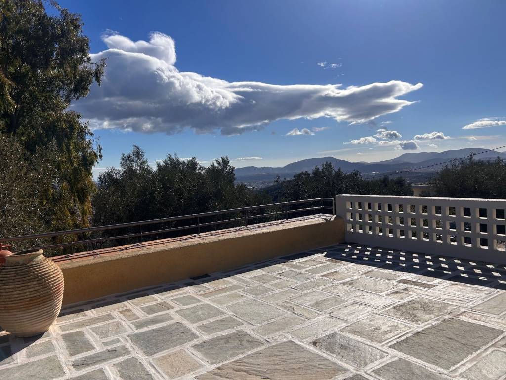 Paiania – Agia Triada, an exceptional 250sqm detached house is available on a 2,000 sq.m. plot with panoramic views. Located in a very quiet area at the foothills of Mount Hymettus, surrounded by greenery and a beautifully landscaped outdoor space. The property consists of a ground floor featuring a reception/living area with an additional space (patio) and access to a very large veranda, a fully equipped kitchen with a gas stove and dishwasher, a spacious area suitable for two dining rooms, and a WC. On the first level, there are two bedrooms and one bathroom. On the second level, there is the master bedroom with its own bathroom, as well as an office area. The house includes a large storage space inside the property and an independent storage room in the garden. It features autonomous underfloor oil heating on each floor, double-glazed windows with screens and additional security bars, a fireplace, and a boiler. The property offers two covered parking spaces and two additional uncovered spaces within the plot, an automatic garage door with remote control, excellent views, and is pet-friendly.