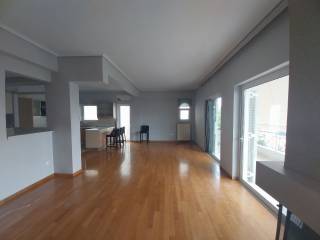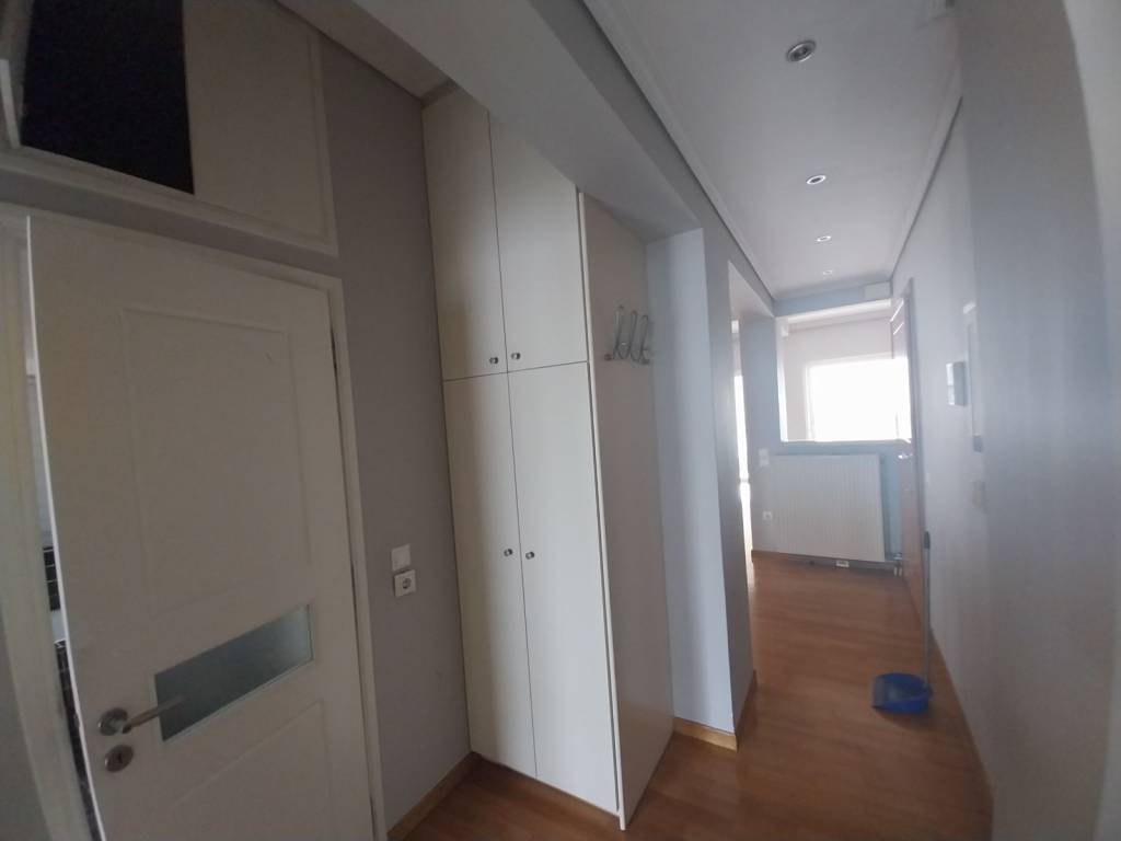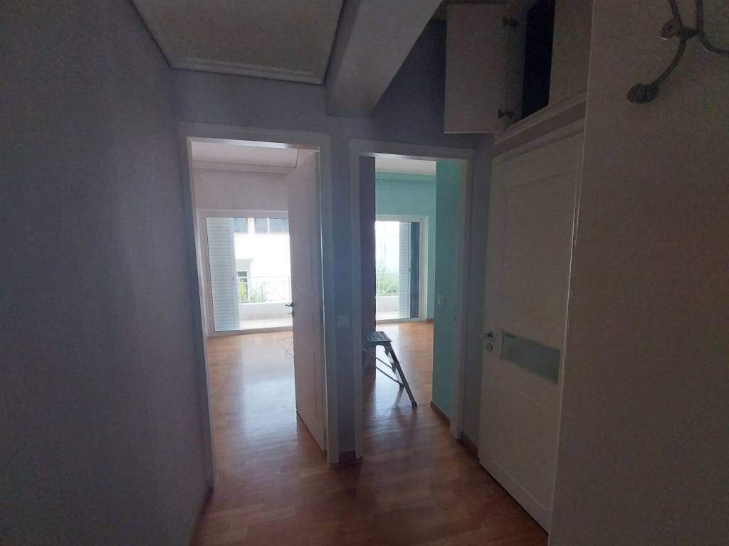 Alimos, Pani Hill, 15 Niriidon Street. First-floor apartment (entire floor) of 96 sq.m. in a two-family house, detached on all sides, through-apartment, built in 2001, in excellent condition. Spacious living room with open-plan kitchen featuring built-in electrical appliances, one large bathroom, and two bedrooms with ample wardrobes. There is also a storage loft above the bathroom. Solid oak parquet flooring throughout, aluminum window frames with double glazing, security door, fireplace, autonomous oil heating with radiators, large front and rear balconies with awnings, and a triple-energy solar water heater. Bright apartment with a very good layout and favorable orientation. Includes an outdoor parking space. No elevator and no shared/common expenses.