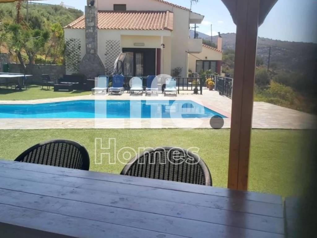 Property Code: 3-322 - Villa FOR SALE in Agios Nikolaos Milatos for € 650.000 . This 255.00 sq. m. Villa is on the Ground floor and features 4 Bedrooms, 2 Livingrooms, 2 Kitchens, 2 bathrooms . The property also boasts tiled floor, view of the Sea, Window frames: Aluminium, parking, a storage unit 47 sq.m. sqm, garden, fireplace, swimming pool, BBQ, open space, internal staircase, drilling, balconies: 40 sqm. The building was constructed in 2003 Plot area: 2350 s.q. . Building Energy Rating: C Distance from sea 1500 meters, Distance from nearest airport: 50000 meters,