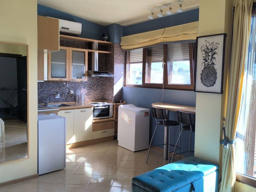 Studio For rent, floor: 5th, in Thermi. The Studio is 29 sq.m.. It consists of: 1 bedrooms, 1 bathrooms, 1 kitchens, 1 living rooms. Its heating is Personal with Natural gas, Underfloor heating are also available, the energy certificate is: C. The property's status is: Renovated. The Studio is Whole floor, Painted, Furnished, Bright.