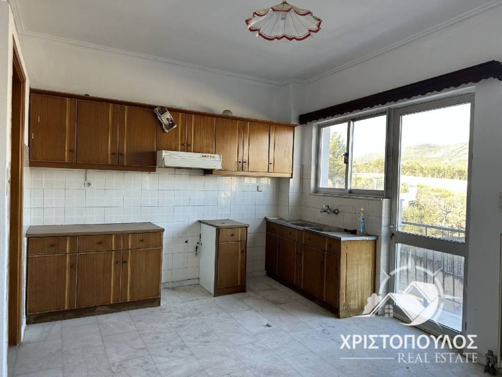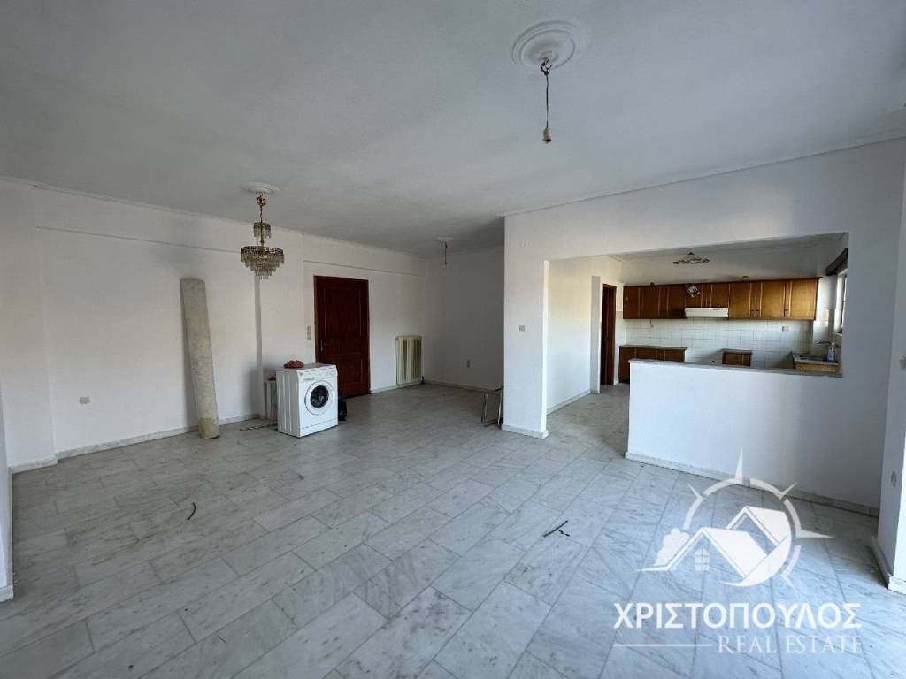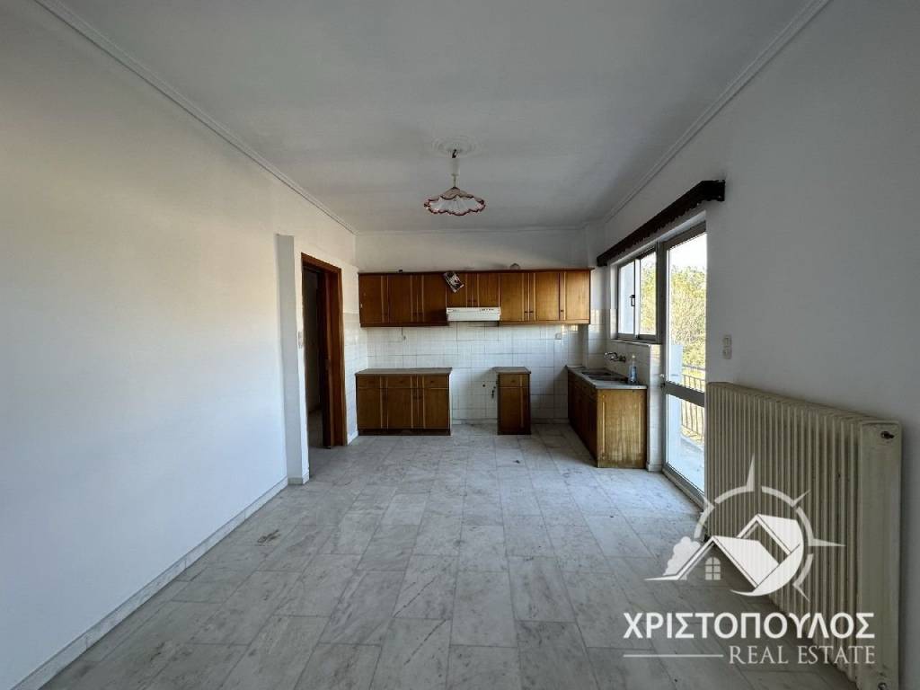 95 sqm apartment in Megali Vrisi. Bright with a view and a balcony around the perimeter. It consists of a large living room, a kitchen with a balcony, 2 bedrooms and a bathroom. With autonomous oil heating. price 46.000€, code 1742