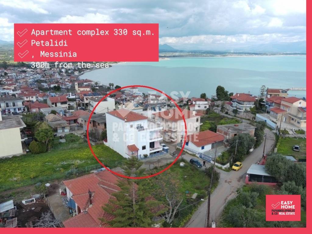 Προς πώληση συγκρότημα διαμερισμάτων 330τ.μ. στο όμορφο Πεταλίδι. Το κτίριο βρίσκεται σε οικόπεδο 204τ.μ. σε ήσυχη γειτονιά, μόλις 300μ. από την θάλασσα κοντά σε super market, σχολείο και την πλατεία της πόλης. Αποτελείται από τρία επίπεδα. Στο ισόγειο βρίσκεται ένα οροφοδιαμέρισμα 127τμ. το οποίο διαθέτει μεγάλη σαλονοτραπεζαρία - κουζίνα σε ενιαίο χώρο, 3 ευρύχωρα υπνοδωμάτια, 1 μπάνιο, 1 WC και 1 αποθήκη καθώς και μεγάλα μπαλκόνια. Στον 1ο όροφο βρίσκουμε ένα ακόμα διαμέρισμα 127 τ.μ. πανομοιότυπο με του ισόγειου. Στον 2ο όροφο υπάρχει ένα διαμέρισμα 77τ.μ. το οποίο διαθέτει σαλόνι με τζάκι και κουζίνα σε ενιαίο χώρο, 1 υπνοδωμάτιο και 1 μπάνιο. Η άμεση πρόσβαση του στη μεγάλη ταράτσα με την εκπληκτική θέα προς την θάλασσα είναι αυτή που του δίνει μία ιδιαίτερη αίγλη. Επίσης διαθέτει υπόγειο 44τ.μ και 2 θέσεις πάρκινγκ με γκαραζόπορτα. Είναι υψηλής ποιότητας κατασκευής με κουφώματα αλουμινίου με διπλά τζάμια και σίτες, αυτόνομη θέρμανση, ηλιακό θερμοσίφωνα και κλιματισμό. Είναι κατάλληλο για να γίνει η μόνιμη ή εξοχική σας κατοικία ή ως επενδυτικό για βραχυχρόνια ή μακροχρόνια μίσθωση. ΤΟΠΟΘΕΣΙΑ Το Πεταλίδι είναι μια γραφική πόλη με ήπιο κλίμα, καταγάλανα νερά και αμμώδεις παραλίες, γεμάτο ελαιώνες και συκιές που του προσδίδουν έναν χαρακτηριστικό μεσογειακό χαρακτήρα. Συνδυάζει το βουνό και την θάλασσα με έναν τρόπο που κόβει την ανάσα και γι’ αυτό αποτελεί τουριστικό πόλο έλξης τόσο για Έλληνες όσο και για ξένους τουρίστες. Είναι μία ζωντανή πόλη, με όλες τις ανέσεις και όμορφες ψαροταβέρνες, εστιατόρια, café και bars και βρίσκεται 27χλμ. από την πόλη της Καλαμάτας και 18χλμ από το αεροδρόμιο. ΑΠΟΣΤΑΣΕΙΣ Παραλία 300μ. Καλαμάτα 28χλμ. Κορώνη 24χλμ. Αεροδρόμιο 19χλμ. Αθήνα 250χλμ For more information, please contact us. EASYHOME - Παπανικολόπουλος & Συνεργάτες Real estate agency Tel. +30 27210 22122 / +30 210 220 2962 E-mail: hello@easyhome.com.gr In order to find more properties, visit our website www.easyhome.com.gr At EASYHOME Real Estate, we are a real estate agency that provides comprehensive property management services. With a strong team of real estate consultants, engineers, architects, lawyers, and notaries, we inform, advise, and handle every matter concerning your unique property or help you acquire your own. We operate in Messinia, Attica, and selected locations across Greece. - The information of the listed properties has been taken from documents given to us or by declaration of the owners and our company bears no responsibility for any wrong information. - In order to indicate the property, documents and certificates, it is necessary to indicate the police ID and the A.F.M. according to Law 4072/11-4-2012 Official Gazette 86 A. - The location of the property shown on the map is for reference only. - Republishing, copying, reproducing, or sharing the advertisements and photos is strictly prohibited without the written consent of EASYHOME Real Estate.