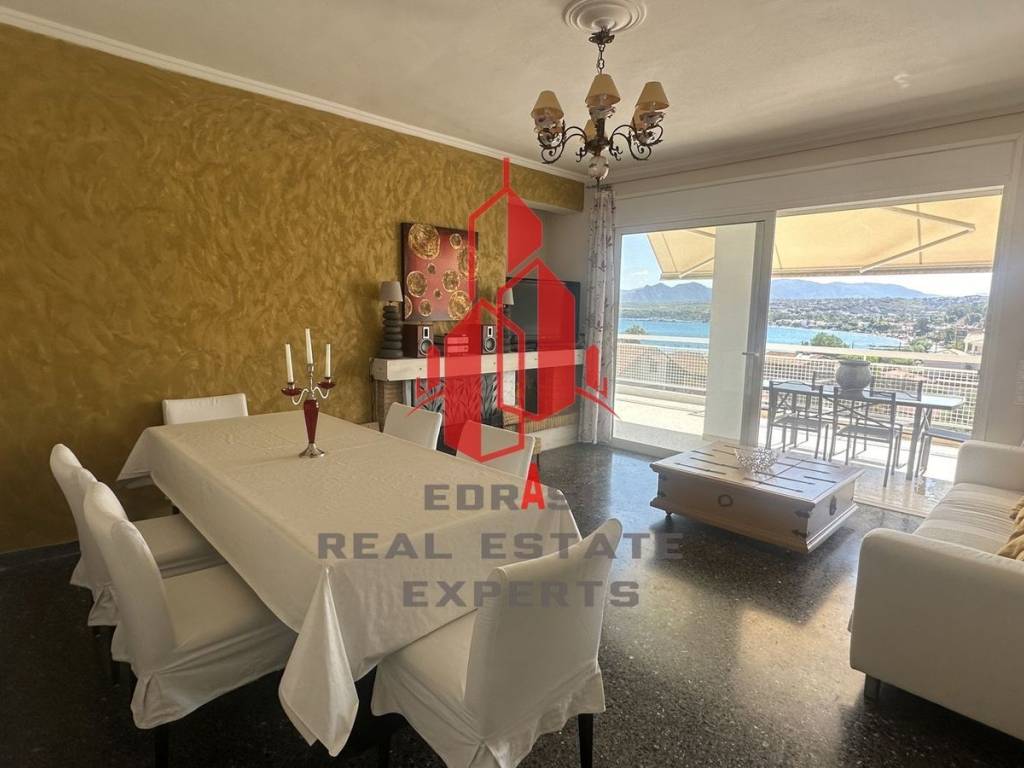 Apartment for rent, in Kalamaki-Loutraki area, 4th floor, detached. The apartment is 110 sq.m. and it is located on a plot of 1.500 sq.m.. It consists of 3 bedrooms, 2 bathrooms, 1 corridor, 1 separate kitchen, 1 living/dining room with a fire place and a 160 sq.m. veranda with unique, panoramic view. The property was built in 1971 and it was renovated in 2022. Its heating is autonomous with electricity, air conditioning are also available, it has alluminum frames with double glazed windows and electric shutters. The energy certificate is C class and its floors are mosaic. It is in an excellent condition, it is close to seaside, school, church and it has a southwest orientation. The apartment is whole floor, painted, fully furnished with modern furniture, penthouse, with facade, bright, airy and it also has electric tent, electric appliances, security door, sattelite receiver, night stream. it is ideal for families, quiet neighborhood, pets are allowed. Edrasi Real Estate, email: edrasirealestate@gmail.com, website:www.edrasirealestate@gmail.com Our office is a member of the Professional Chamber of Athens (E.E.A.) with General Registry number (GE.MI.) 171073503000. In order to indicate the property and sign the indication order, it is required to show the I.D and VAT, in accordance with the Law on brokers (Law 4072/2012) ΦΕΚ 86/Α/11.4.2012