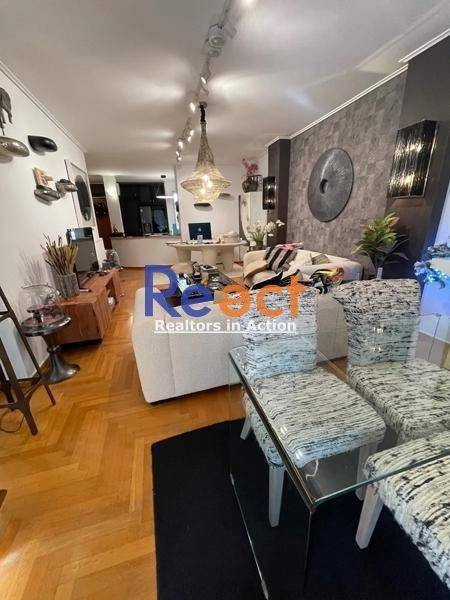 Agia Paraskevi (Attica - Northern Suburbs), Kontopefko - Apartment 110sqm plot 6000sqm, electrical appliances furnished, bedrooms 2, levels 1, 1st, year built 1990, energy class A, living room, kitchen, bathroom, wc, heating type: autonomous, heating medium oil, air condition, parking covered, quiet, dual aspect apartment, luminous, view unobstructed view, frontage, storage space, solar heater, tents, elevator, frames aluminum, double glazed windows, floor type wood & tile, night electricity discount rate, secure door, alarm, video doorbell, pets allowed, residential zone, eastern orientation.