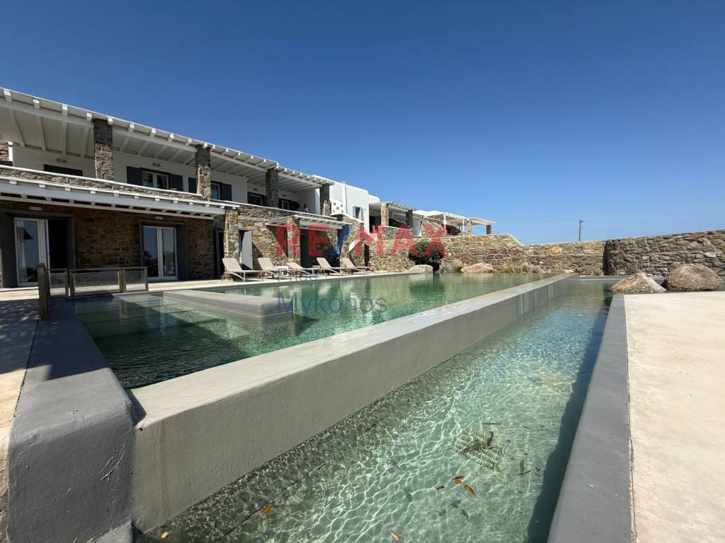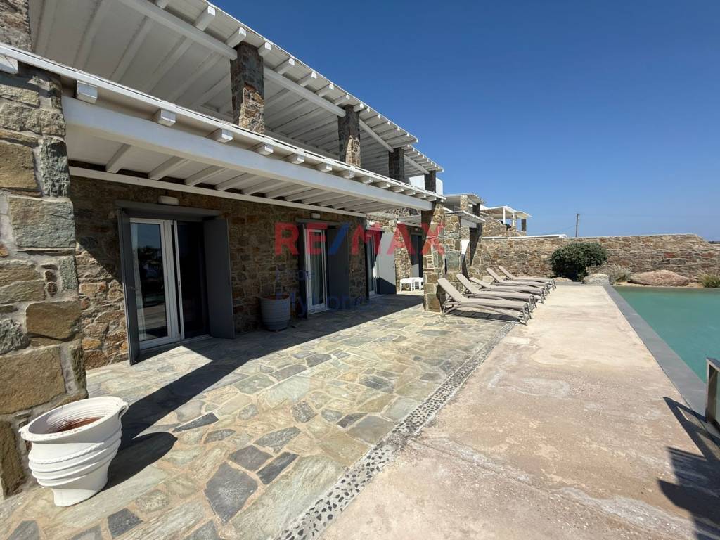 Villa For sale, floor: Ground floor, 1st (2 Levels), in Mykonos - Kalafati. The Villa is 250 sq.m. and it is located on a plot of 2.000 sq.m.. It consists of: 5 bedrooms (5 Master), 5 bathrooms, 1 wc, 1 kitchens, 1 living rooms and it also has 5 parkings (1 Pilotis space, 4 Open). The property was built in 2000. Its heating is Autonomous with Electricity, Air conditioning, Boiler are also available, it has Alluminum frames with Double glazed windows, the energy certificate is: B and its floors are Tiles, Marble, Stone, Cement decorative coating. The property's status is: Excellent condition, it is close to Sea, Seaside, Super Market, Cafe/Restaurants, 500 Km from sea, it has Sea, Panoramic, Unobstructed view and it has South orientation. The Villa is Painted, Furnished, On Corner, With Facade, Bright, Airy, Sunny, Luxury and it also has the following unique features and advantages: Window Screens, Tents, Electric Appliances, Storage, Internal staircase, Swimming pool, Garden, BBQ, Sattelite Receiver, Three phase current, Grass, Trees, Quiet neighborhood, Service/Maid’s room, Septic tank. Price: €2.250.000. Remax Pride Μύκονος, contact phone: 2289077737, email: mykonosremax@gmail.com, website: