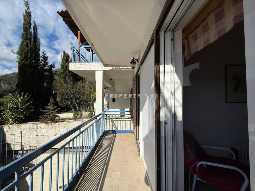 Ref. code: AE639 70 sq.m. apartment in Epano Epidavros, just 3.5 km from the center of Ancient Epidavros, and the beach. 2 bedrooms | 1 bathroom | 2 balconies Bright apartment, located on the elevated ground floor of a 3 level building, with 2 balconies offering unobstructed views, one measuring 10 sq.m. and the other 5 sq.m.. It consists of a spacious hallway and an open-plan living and dining area with access to a balcony and a fully equipped kitchen. A hallway leads to the 2 bedrooms and the fully equipped bathroom with a bathtub. Both bedrooms have access to a balcony. Technical Characteristics The building was constructed in 1998 and consists of a total of 6 apartments. It has windows in the bathroom and 2 (two) windows in the living room. The apartment is sold fully furnished, including electrical appliances. It is equipped with a water boiler located in the bathroom. It also has a garage for parking and a communal garden. The orientation is southeast. Location Epano Epidaurus, in the Argolis region, is a picturesque village known for its peaceful atmosphere and stunning natural beauty. It is located just a few minutes from historic Ancient Epidaurus, famous for its ancient theater. The area offers pristine beaches and lush landscapes, ideal for those seeking a combination of culture, sea, and relaxation. Epano Epidaurus is an excellent choice for a home or investment, thanks to its peaceful lifestyle and easy access to major attractions in the Argolis region. Distances Sea 3.5 km Ancient Epidaurus 3.5 km Old town of Nafplio 40 km Athens International Airport 156 km (2 hours) This property information is based on the data provided by the owners. Our company is not responsible for possible inaccuracies in the information. For visits to the properties, identification/passport is required. The locations of the properties on the map are approximate. For the indication of the property it is necessary to show your identity card and your VAT number, and the signature of the corresponding form according to Law 4072/11-04-2012 (Government Gazette 86 A). Real Estate Agency PROPERTY SHOP GREECE Tel: 27520 58282 | Asklipiou 66 Nafplio 21100 Property Agent Aspasia Athinaiou | aspasia@propertyshop.gr | +30 694 5154 189 For more information visit our website: www.propertyshop.gr