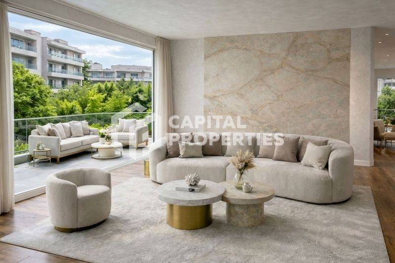 with dedicated lounge and dining zones, seamlessly connected to a large balcony