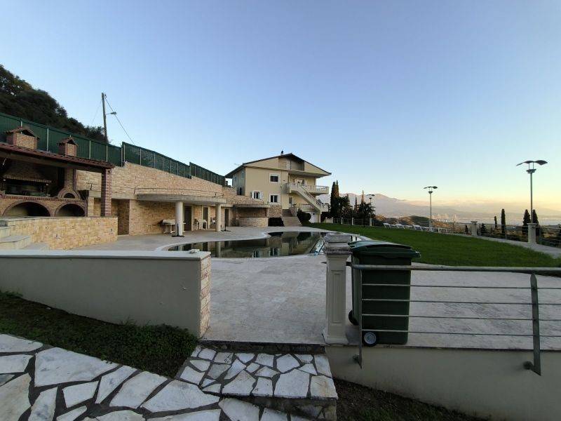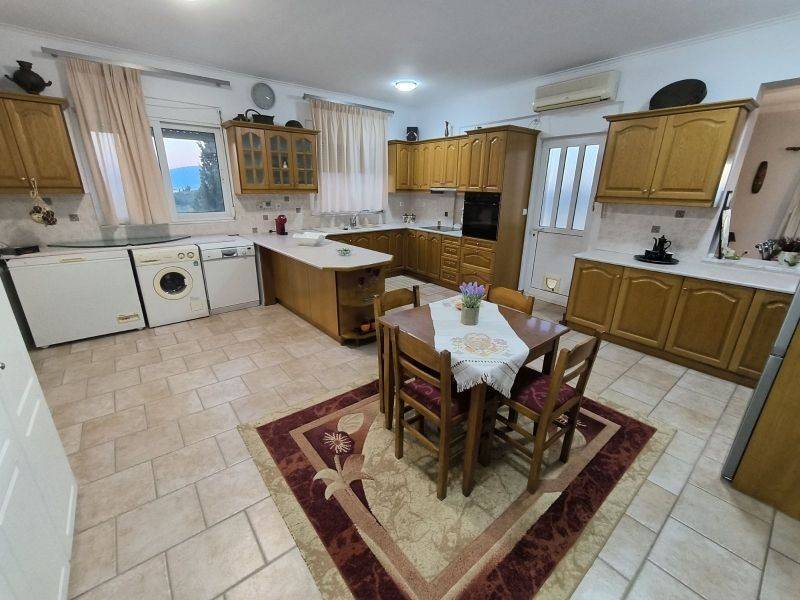 Luxurious detached house - maisonette 450sq.m. with excellent quality materials on a plot of 4,500sq.m. built in 2006. consists of a large open plan living-dining room, 5 spacious bedrooms, spacious kitchen, 4 bathrooms, one with jacuzzi, fireplace, large verandas-balconies around all levels. The ground floor with independent and internal entrance is fully configured into a residence with 2 bedrooms, open plan living room, kitchen, bathroom, storage spaces, and a closed garage for 2 cars. It has autonomous oil heating, solar, boiler, aluminum frames, double glazing, screens, internal marble stairs, high ceilings, alarm system and cameras everywhere, built-in, electronic devices, security doors. It also has a landscaped surrounding area with a large swimming pool, a garden with lawns and plants, various types of fruit trees, a barbecue, 2 open parking spaces, a garage door, external pens around the house. The interior spaces are bathed in light, with the living room opening directly onto the main terrace, unifying the interior with the exterior and focusing on the stunning panorama of the unique Rio Bridge View. An exceptional property with modern amenities, offering a breathtaking living experience. The absolute advantage of the property is the uninterrupted, panoramic view-superspectacle from the spacious terraces. Located in a quiet and private spot, it guarantees absolute peace and privacy, while at the same time being just a few minutes from the city of Nafpaktos, and the top beaches. An investment, a rare opportunity to acquire a property combining luxury with practicality. Selling price €1,500,000. Achaian house Real Estate Patra Amerikis 68 tel. 2610336023 email axaikospiti@hotmail.com www.axaikospiti.gr