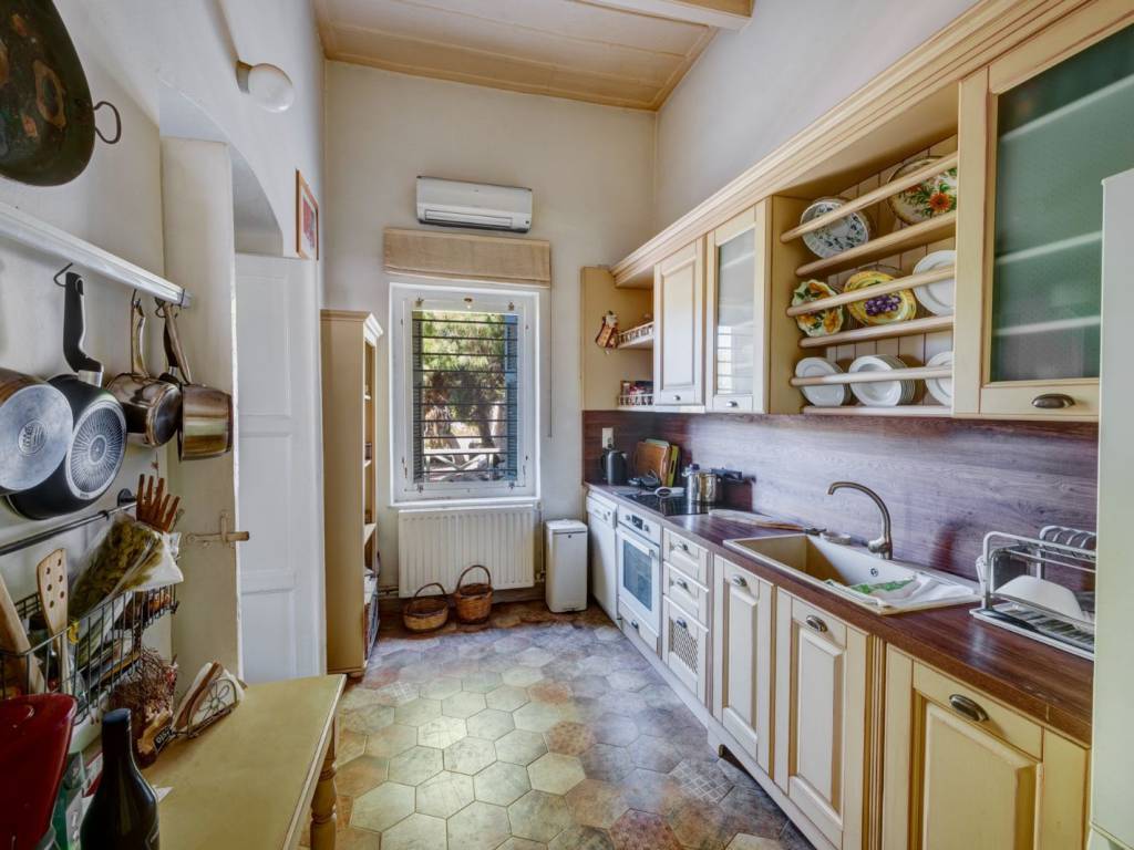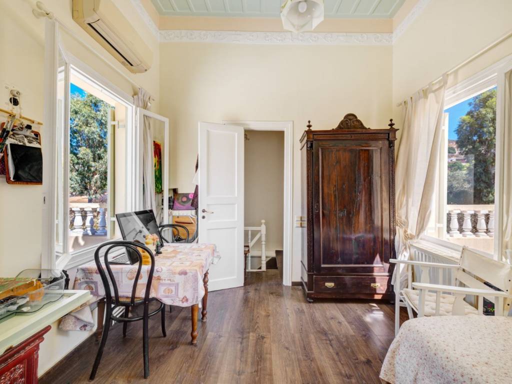 Surrounded by the famous mansions of Poseidonia, also known as Delagrazia, the estate includes a beautiful stone-built house dating back to around 1860. Completely renovated, the two-story residence features characteristic architectural elements of the Syros’ golden age buildings. The house consists of a ground floor and a first floor and includes an entrance hall, a living/dining room, kitchen, 3 bedrooms, bathroom, and W.C. with a total area of 113.90 m², as well as an additional 46.00 m² of an enclosed veranda, which comes as an extension of the ground floor. It comes with central heating and A/C. Within the 4600 sq.m. estate, there is a seating area with a 40.00 sq.m. pergola to enjoy the long sunny days in the shade, a water well and two old stone warehouses measuring 23.44 sq.m. and 15.00 sq.m. respectively, while the large trees and plants in the garden create an idyllic outdoor environment. The property is located just 370m from the Tsiropina mansion, the most beautiful cultural center of the area and 830m from the small but well-known beach of Poseidonia or Fetouri. Alternatively, 1890m away is the sandy beach of Mega Yialos, which is the most protected from the North winds bay of the island. The bus stop is located outside the property, offering connections to the other villages and Ermoupoli. If you have your own vehicle, reaching the airport, port, or city center will take you approximately 15 minutes. An excellent choice for a residence or for an investment!