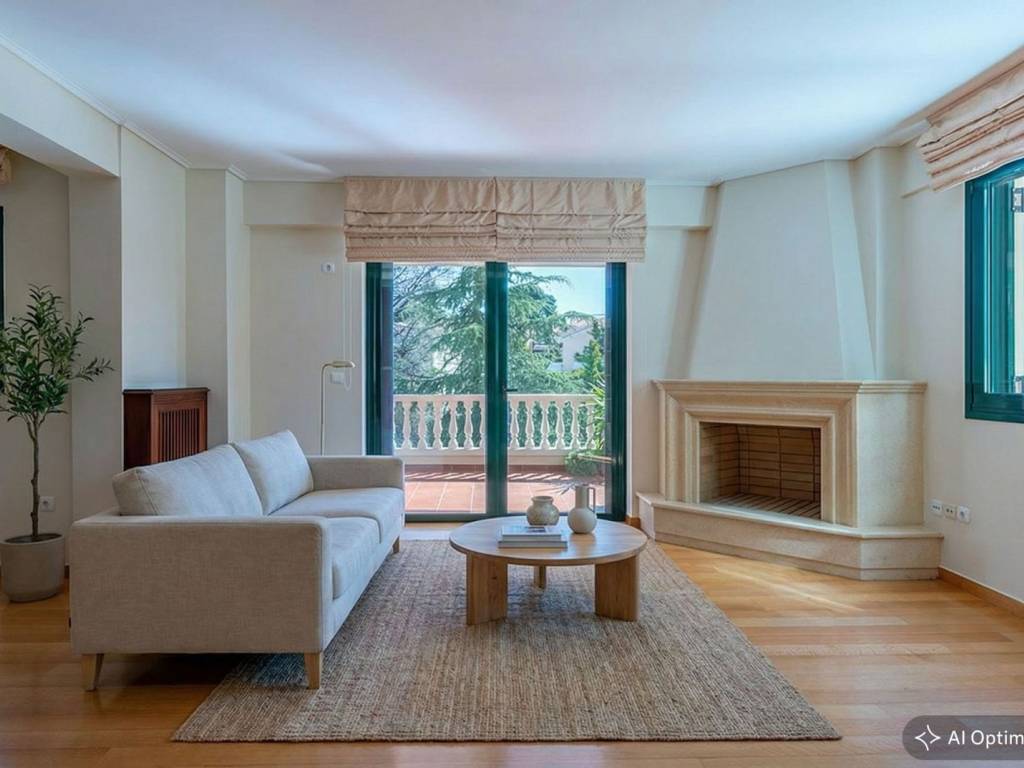 You will be instantly charmed by this bright and inviting 80 sq.m. first-floor apartment, ideally located just steps from the vibrant center of Kifissia. Situated in a well-maintained building surrounded by a beautifully landscaped garden, the property offers both comfort and convenience. The apartment features a spacious living area with a fireplace and large openings that lead to a generous balcony, creating a light-filled and airy atmosphere. It includes two bedrooms, a bathroom, a guest WC and a fully built-in kitchen. Additional features include autonomous oil heating, air conditioning, an alarm system, excellent natural light throughout, and an underground parking space. Its layout and location also make it an excellent choice for professional use. Kifissia is one of the most prestigious suburbs of Northern Athens, a quiet, green oasis and a commercial hub, just 12 kilometers away from the city centre. Unique features: Kifissia, home to wealthy Athenian families in the post-War period has retained its genteel, old world charms and remains one of the most sought-after addresses. A refreshingly green area with several parks, large public squares, an upscale open-air shopping district with haute couture brands and international labels, banks, refined restaurants, trendy bars, sports clubs and fitness centres. It is close to most international schools and attracts a lot of foreign residents. Its cosmopolitan nature reflects in the speciality supermarkets and food stores that abound. Two of Greece’s largest malls are just a 5-minute drive away. Accessibility: Kifissia is easily accessible by a regular train and bus service to the centre of Athens. The international airport is a 45-minute drive via the Attiki Odos.
