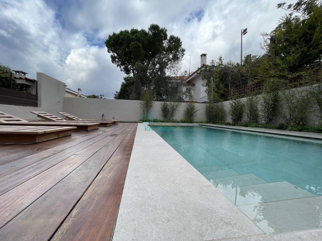 PENTELI, Detached House 305 sq.m. in 430 sq.m. plot, painted, ground floor, 4 levels, luxurious, for investment, at residential area, year of construction 2025, n/a, open view, 4 b/r, 3 master b/r, 2 living rooms, fireplace, 4 bathrooms, 1 WC, kitchen, 2 offices, double-sided, front facing, bright, heating autonomous, solar panel, air condition, floor heating, with energy class A+, with floor type n/a, with n/a joinery, double glass pane, double glazing, pest net, internal staircase, elevator, disabled access, door tv, security door, alarm, satellite dish, cable TV, night discounted electricity, veranda, terrace, attic, pets allowed, garden, playroom, swimming pool, bbq, storage room, open garage, price 1.350.000€, code 58519