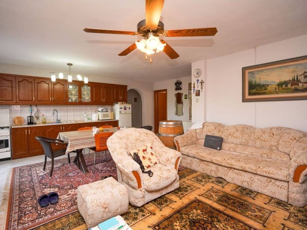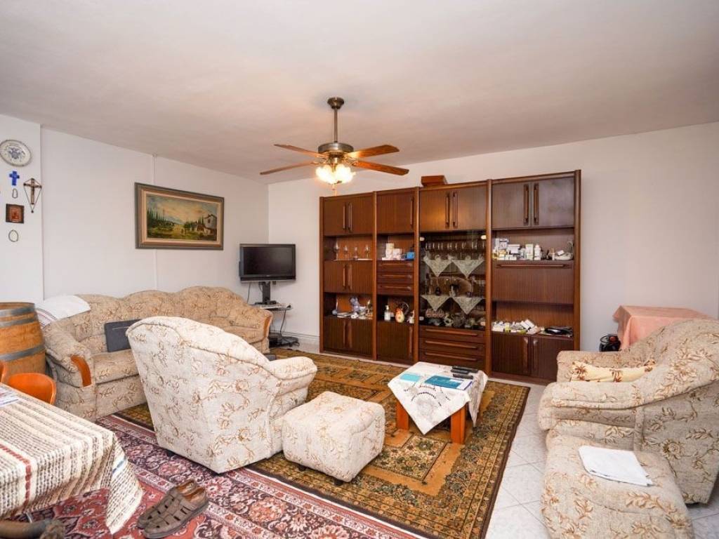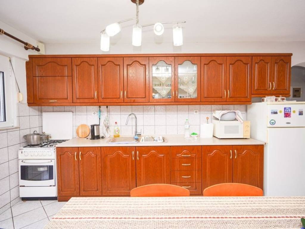 On the raised ground floor there is a living room with a fireplace, a kitchen, a bathroom and three bedrooms, and on the semi-basement which is an auxiliary space there is a living room, a kitchen, two bedrooms, a bathroom and the boiler room - storeroom.