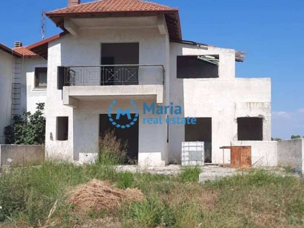 PROPERTY CODE 18141 For sale unfinished detached house of 131 sq.m. on a land of 370 sq.m. in Elani, Halkidiki. The detached house is developed on three levels. On the ground floor (48 sq.m.) there is the living room, a room and a bathroom. With an internal staircase we go up to the first floor (28 sq.m.), where there are two rooms and a bathroom. From the same staircase we go down to the basement (55 sq.m.), which consists of a single space and has two windows. The detached house has plumbing and electrical installations. The property is located 2 km. from the sea, in a quiet area with a view of greenery and open space.