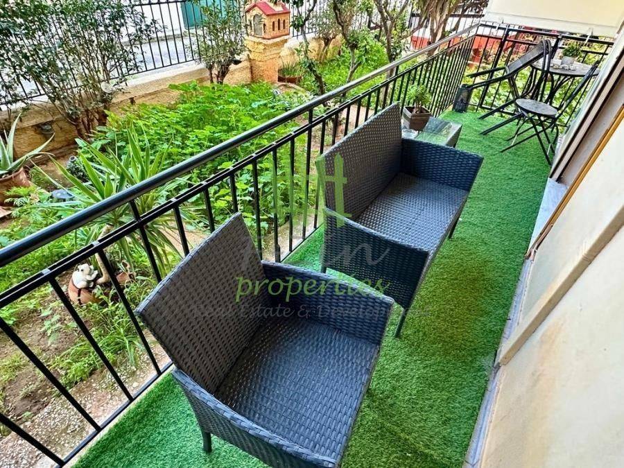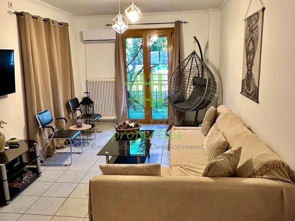 Glyfada, Aixoni, Apartment For Rent, 65 sq.m., Property Status: Amazing, Floor: Ground floor, 2 Bedrooms 1 Kitchen(s), 1 Bathroom(s), Heating: Personal - Electricity, Building Year: 1996, Energy Certificate: D, Floor type: Tiles, Type of door frames: Aluminum, Features: Balconies, Furnished, Luxury, Roadside, Bright, AirConditioning, Back yard (Garden), Painted, Price: 850€. F-Zin PROPERTIES - REAL ESTATE & DEVELOPMENT