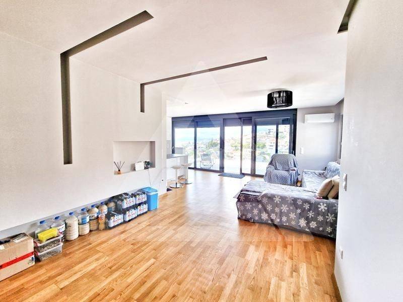 Voula, Panorama - Apartment 87sqm bedrooms 2, master bedroom, levels 1, 3rd, penthouse, newly built, year built 2021, energy class B, living room, kitchen, 2 bathrooms, heating type: autonomous (oil), air condition, parking ground floor, quiet, dual aspect apartment, luminous, panoramic view, frontage, drop ceiling, electric roller shutters, storage space, solar heater, balconies, balcony 25sqm, elevator, built in appliances, aluminum frames, double glazed windows, door screen, wood & tile floors, night electricity discount rate, secure door, alarm, video doorbell, luxurious, residential zone, south-western orientation, access from asphalt.