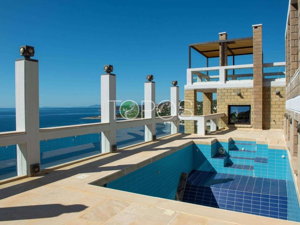 A unique residence with a magnificent view in the area of Dikastika, in Marathonas bay. Designed by a well-known Greek architect in 2006, the building is developed on three levels which in fact are conceived and can be converted in three different residencies occupying one level each. Currently all three levels are functioning as one single house and are connected through two staircases and an elevator. Each residence consists of a living room area in direct connection with the outdoor living area, a kitchen, bathrooms and bedrooms. The total building area is 790sqm and the plot area is 1000sqm on a 14m slope, which guarantees an unrestricted view, regardless of future constructions on the surrounding plots. A gym area with an indoor jacuzzi pool has been created on the first level and an outdoor pool of 40sqm framed by a beautiful terrace welcomes the new owners on the second level. Independent heating, ventilation, alarm installations, storage and four parking spaces are available in this contemporary structure that stands out fully harmonized with the local environment.A unique residence with a magnificent view in the area of Dikastika, in Marathonas bay. Designed by a well-known Greek architect in 2006, the building is developed on three levels which in fact are conceived and can be converted in three different residencies occupying one level each. Currently all three levels are functioning as one single house and are connected through two staircases and an elevator. Each residence consists of a living room area in direct connection with the outdoor living area, a kitchen, bathrooms and bedrooms. The total building area is 790sqm and the plot area is 1000sqm on a 14m slope, which guarantees an unrestricted view, regardless of future constructions on the surrounding plots. A gym area with an indoor jacuzzi pool has been created on the first level and an outdoor pool of 40sqm framed by a beautiful terrace welcomes the new owners on the second level. Independent heating, ventilation, alarm installations, storage and four parking spaces are available in this contemporary structure that stands out fully harmonized with the local environment.