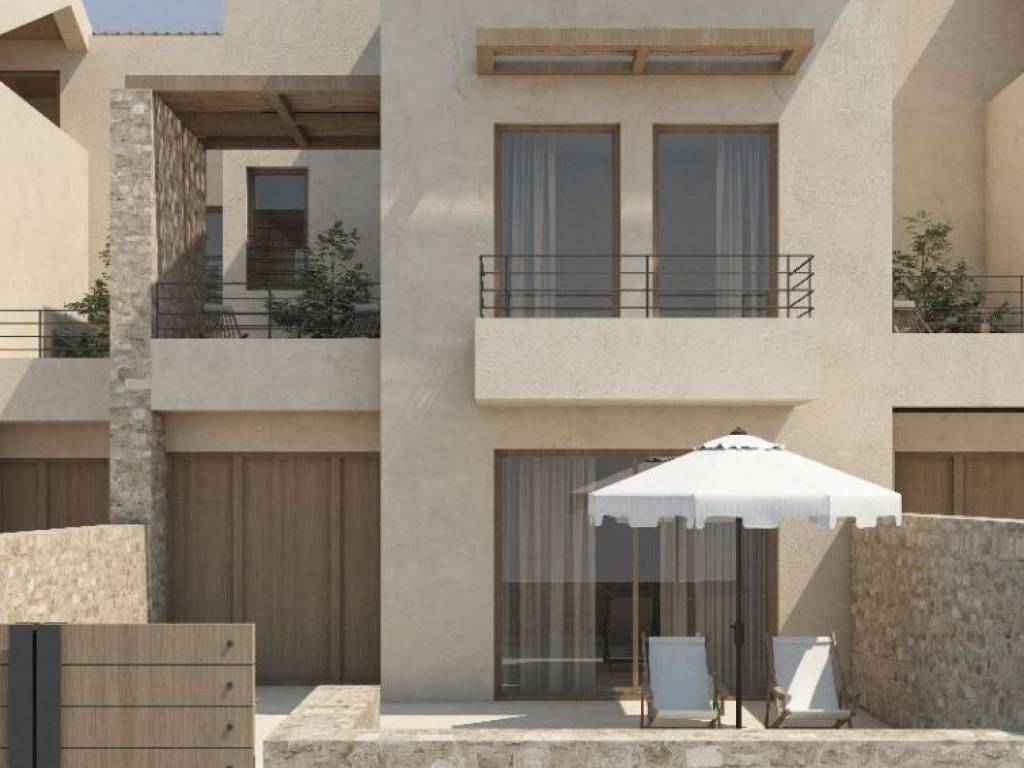 In Sivota Thesprotia, a maisonette under construction with a total area of 123 sq m is available for sale. It is located in a residential complex and has an independent entrance from the rest of the complex. It is developed on three levels: ground floor, first floor and attic. The floors communicate with each other with an internal staircase. The ground floor area with an area of 52.67 sq m consists of an open-plan living room, dining room, modern aesthetic kitchen, bathroom and patio area with direct access to the garden and pool. The first floor with an area of 46.79 sq m includes 2 large bedrooms with fitted wardrobes, bathroom and balconies overlooking the greenery of the area. The attic with an area of 24.08 sq m has a master bedroom with a private bathroom and a space that can be used as an office or guest room and a balcony. The exterior of the house has space for the creation of a private garden, creation of a 12.6 sq.m. swimming pool with sunbeds and BBQ., The property has a modern design, high-standard frames and installation for smart home systems. It is a very good choice for buying a property due to the close distance from the center and the quality of construction. Distance from the center: 700 m. Distance from the beaches: 560 m. Sale price: 396,000€