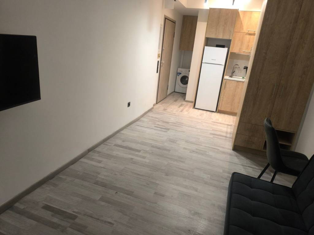 Studio apartment 26-30 square meters equipped with electrical appliances (air conditioner, washer dryer, refrigerator, oven, new gas hob) kitchen cabinets, new window frames, its own garden 25 sq.m. awning, new electrical installation after renovation, it is the first home In a very close distance from Agios Ioannis Station approximately 700m-1000m supermarket at 80m transport at 10m all you need is a table