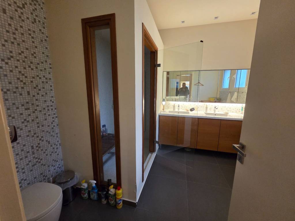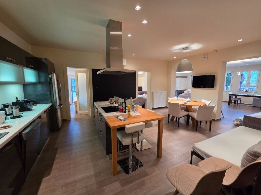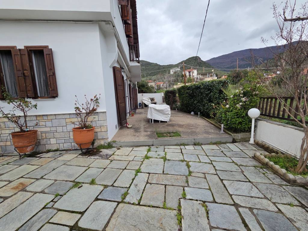 YOUTUBE-PLAYLISTE https://www.youtube.com/playlist?list=PLsk4lFAUsmioj8hv8T3l0kh6j16iR65Fs In einem luxuriösen, zweistöckigen Herrenhaus im traditionellen Stil steht die Erdgeschosswohnung mit 180 m² Wohnfläche auf einem 630 m² großen Grundstück zum Verkauf. Es handelt sich um eine separate, 180 m² große Wohneinheit mit eigenem Garten. Das Obergeschoss gehört einem anderen Eigentümer. Die zum Verkauf stehende Immobilie ist vollständig eigenständig und verfügt über lastenfreie, sofort übertragbare Eigentumsurkunden. Sie befindet sich am zentralen Platz von Paleokastro Agios Vlasios in Volos, 3 km vom Meer und 13 km von der Stadt Volos entfernt. Das Haus wurde komplett renoviert und verfügt über ein modernes Interieur, einen großen Vorder- und Seitengarten sowie eine 4 m lange elektrische Markise mit Windsensor. Es verfügt über einen großen, offenen Wohn-, Küchen- und Essbereich mit Kochinsel, zwei Schlafzimmer, einen zusätzlichen begehbaren Kleiderschrank, zwei moderne Badezimmer und direkten Zugang zum Innenhof. Grundriss Das Haus ist komplett renoviert, modern und äußerst funktional. Der seitliche Innenhof ist über eine Balkontür zugänglich von: • dem Wohnzimmer • beiden Schlafzimmern Alle Räume zeichnen sich durch große Fensterfronten, viel Tageslicht und direkten Zugang ins Freie aus. Die Außenrahmen sind aus hochwertigem Holz gefertigt und entsprechen der traditionellen Architektur von Pelion, wodurch der Charakter des Hauses erhalten bleibt. Ankleidezimmer/Hauswirtschaftsraum Ein separater begehbarer Kleiderschrank bietet: • Schubladen und Schränke • Platz zum Aufhängen von Kleidung • einen großen Spiegel • den Hauptverteilerkasten des Hauses • Telefon, Alarmanlage und Smart-Home-System Ausstattung: Smart Home (Beleuchtung, Alarmanlage, Türsprechanlage, Gerätesteuerung), integriertes Soundsystem innen und außen, Holzrahmen, Corian-Arbeitsplatte, Franke-Spüle. Heizung: Autonome Heizung mit eigenem Brenner und Daikin-Heiz-/Kühlsystem. Offene Küche – Wohn- – Essbereich Beim Betreten des Hauses empfängt Sie ein großzügiger, offener Raum mit vielen Fenstern und einer Balkontür. Ausstattung: • Wohnzimmer • Esszimmer • Smart-TV & Soundsystem • Versteckte Lautsprecher im Haus und im Garten Küche Moderne Küche mit Kochinsel: • Corian-Arbeitsplatte • Eingebautes Franke-Spülbecken • Eingebauter Geschirrspüler • Backofen & Kochfeld auf der Kochinsel • Reichlich Stauraum (Unter- und Oberschränke) • Essbereich mit Barhockern Badezimmer Das Haus verfügt über zwei moderne Badezimmer. Großes Badezimmer • Doppelwaschbecken • Duschkabine mit Hamam-Funktion • Waschmaschine • Großes Fenster – natürliche Belüftung Zweites Badezimmer • Dusche • Moderner Waschtisch