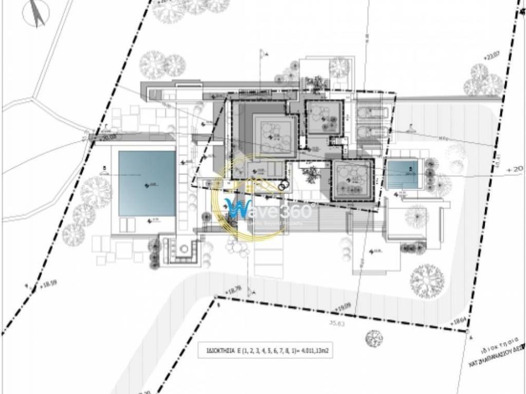 Luxury residential project for sale in Kamaria Alyko – Glyfada, Naxos (Cyclades, Greece), approximately 400 m from Glyfada beach, on a 4,000 sq.m. plot. Building permit issued 02/2024 (valid) and excavation works already completed.