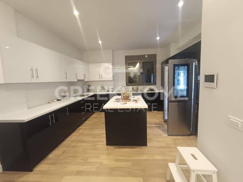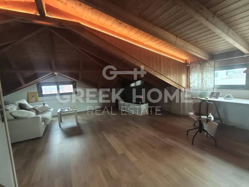 Kifissia, Adames (Ikismos Peloponnision) - Detached House 440sqm plot 350sqm, fully furnished, bedrooms 4, master bedrooms 2, levels 4, ground floor (130sqm) - 1st (120sqm) - 2nd (100sqm) - attic (90sqm), newly built, year built 2014, renovation year 2024, energy class A+, 2 living rooms, 2 kitchens, 3 bathrooms, wc, heating type: individual unit (heat pump), air condition, parking open space, quiet, dual aspect apartment, luminous, unobstructed view view, frontage, storage space, boiler, fireplace, balconies, large balconies, tents, elevator, garden, aluminum frames, double glazed windows, door screen, wood & tile floors, secure door, alarm, surveillance cameras, video doorbell, luxurious, under floor heating, internal staircase, playroom, cloakroom, laundry room, pets allowed, close to square (up to 500m), close to bus stop (up to 100m).