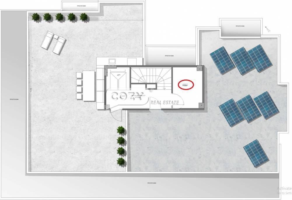 In a complex of 2 independent buildings, for sale under construction, bright three-sided Apartment 117.86 sq.m. on the 2nd floor. It consists of a living room, 3 bedrooms, 1 of which is a master and the bathroom of the apartment with a window. Underfloor heating with heat pump. The property has the exclusive use of the 110 sq.m. roof with BBQ kitchen and infrastructure for jacuzzi, it will also have a 30 sq.m. photovoltaic energy production and storage system of 5kW. Energy class A+. It has 2 parking spaces and an 8 sq.m. storage room on the roof.