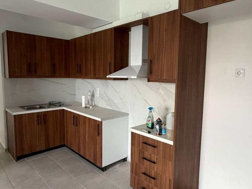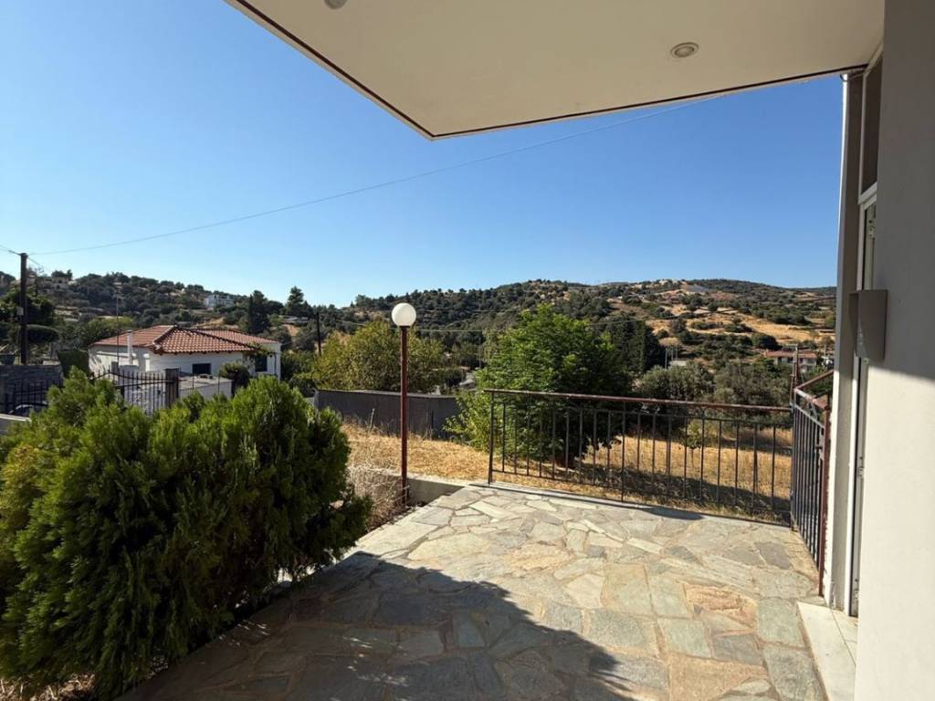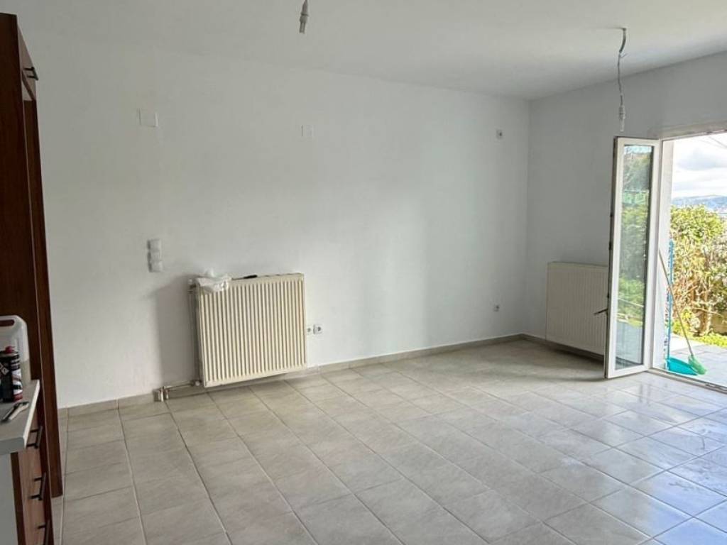 Apartment in Velos, Evia, in an elevated position, just 5 minutes from Aliveri. The space consists of an open-plan kitchen-living room and dining area, two bedrooms, and one bathroom. The kitchen is brand new, renovated in 2026. The property is located in a very quiet area, with no adjacent houses—independent and private. It features balconies with beautiful views of the private garden, a rooftop terrace as well as a closed underground garage that can also be used as storage space. New owners have building rights on top of the apartment. Heating is autonomous oil, ensuring comfort all year round. Ideal for a vacation home or permanent family residence. For more information, contact me.