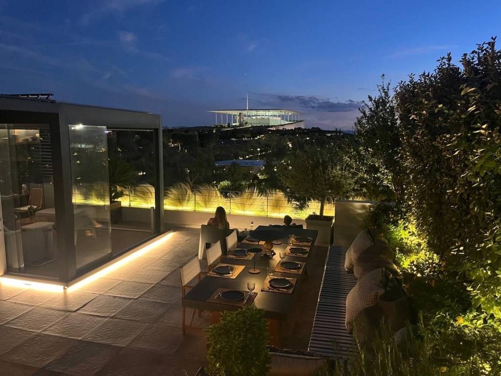 Luxury Fully Furnished Residence with Private Roof Garden, Opposite Stavros Niarchos Park (Unobstructed Views) An exceptional high-end residence is available for rent, built in 2015, featuring distinctive architecture, refined design, and premium specifications. Located on Evripidou Street in Kallithea, the property offers unobstructed views of the Stavros Niarchos Foundation Cultural Center and sea views from the private roof garden. Main Residence – 150 sq.m. • 3 bedrooms • 2 bathrooms & 1 guest WC • master bedroom with en-suite bathroom and walk-in wardrobe • fully equipped kitchen • spacious living & dining area • fireplace • independent natural gas heating • air conditioning • large terraces with complete privacy Independent Guesthouse – 35 sq.m. Fully functional, featuring a living/sleeping area, office space, sofa bed, kitchen, and bathroom. Ideal for guests, home office use, or staff accommodation. Exclusive-Use Roof Garden – 120 sq.m. A self-contained living and entertaining space offering: • landscaped garden • automatic bioclimatic pergola • heated office / lounge area with projector • fully equipped kitchen • bathroom • outdoor dining table for 12 guests • outdoor shower • complete privacy • unobstructed view of the whole park and partially sea view ️ Interior & Furnishings The residence is offered fully furnished with high-end designer furniture and curated artwork. Designed by a renowned Greek designer and featured as a selected project in the designer’s official portfolio. ➕ Additional Features & Smart Technology • CCTV system (indoor & outdoor areas) • Full security alarm system throughout • Keyless electronic locks on all main entrances • Smart home system with mobile control for lighting, awnings, fans, and heating • Internal telephone communication system between different areas • Fiber optic internet infrastructure • MusicCast multi-room sound system in every room • Automatic irrigation system for terraces & roof garden • 3 fully equipped kitchens • 3 full-size refrigerators, 1 small refrigerator, minibar refrigerator, wine refrigerator • Dedicated laundry room with washing machine & dryer • Private parking space • Storage room Fully furnished Long-term rental Ideal for expats, senior executives, corporate or diplomatic tenants