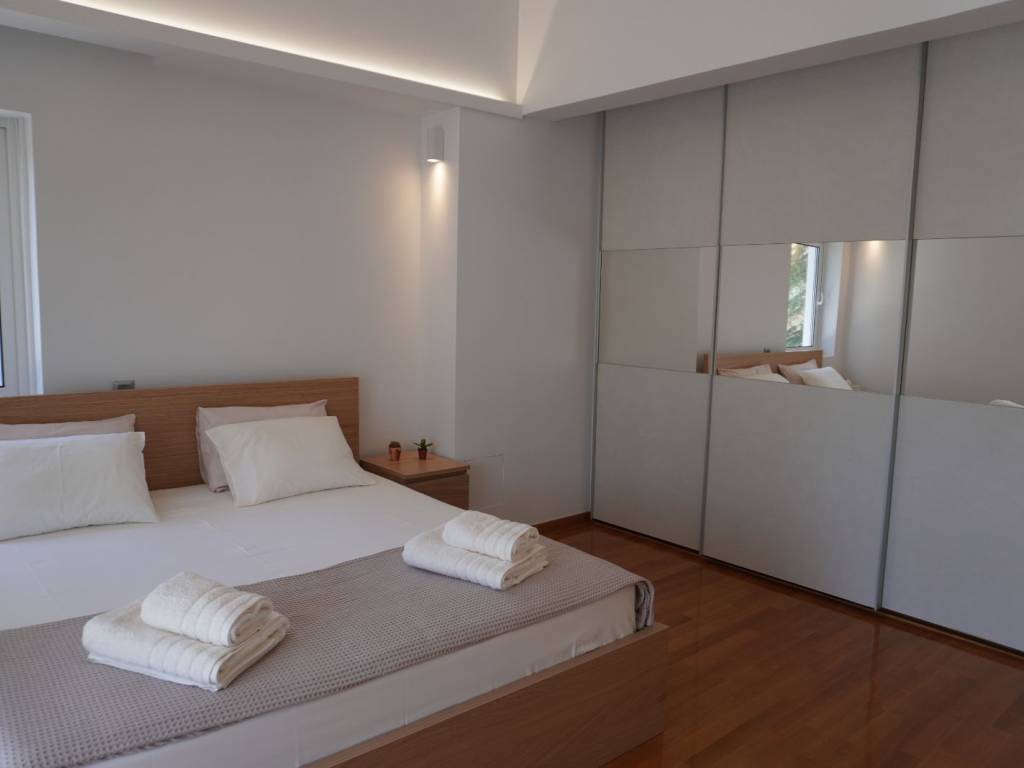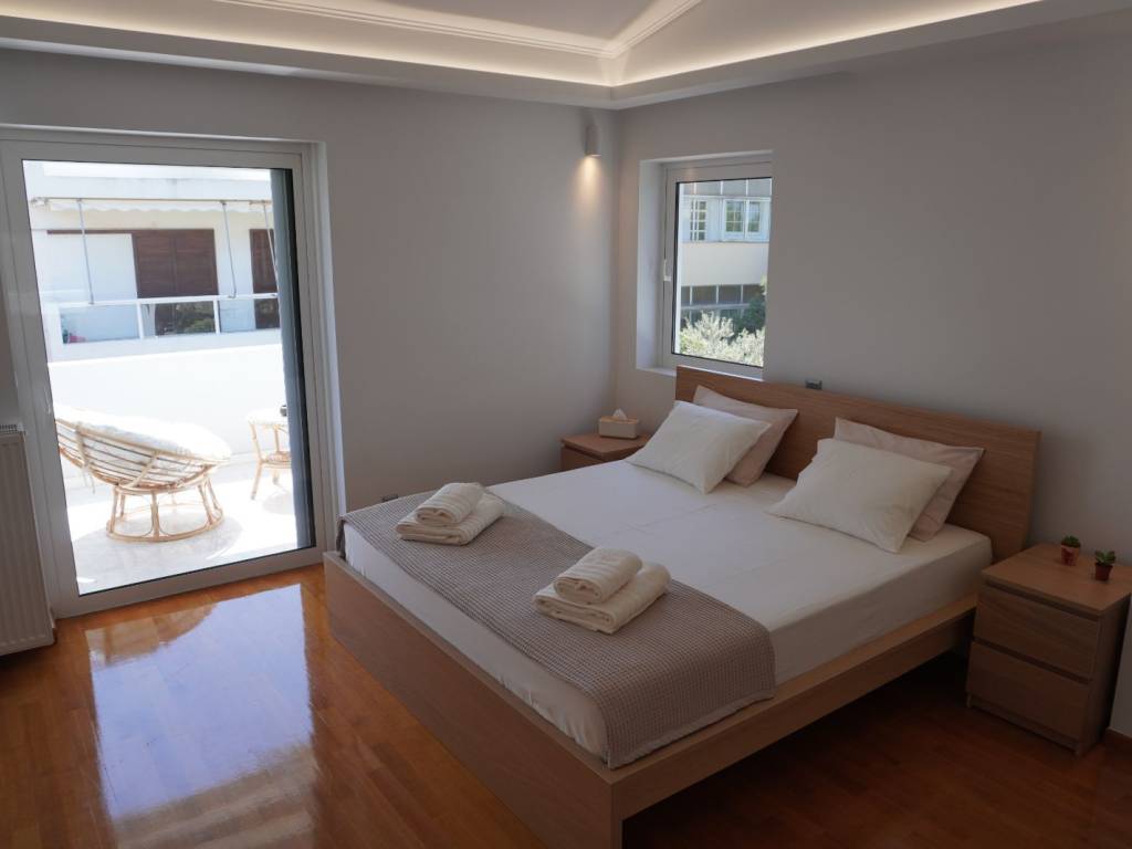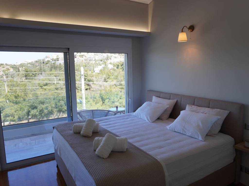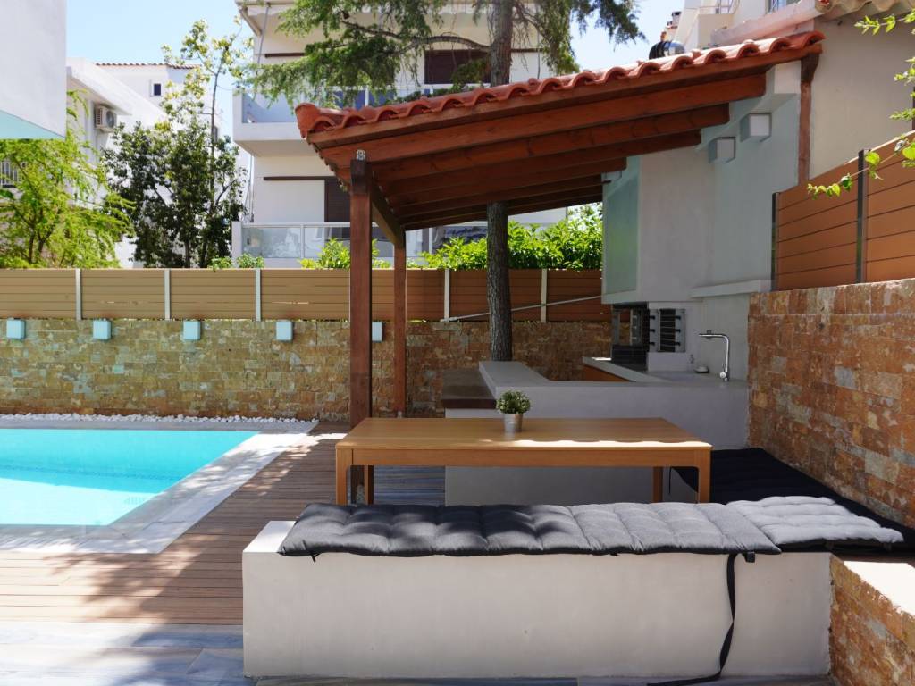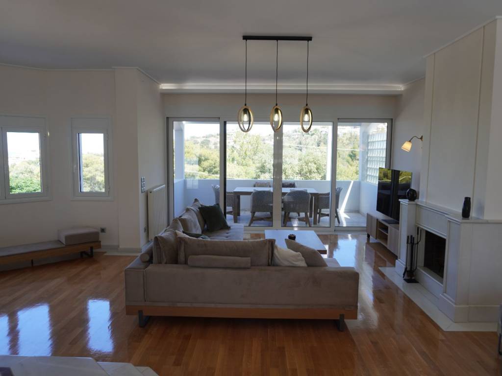 Luxury villa with 3 master bedrooms with en-suite bathrooms, a very large living room and dining area, and a spacious kitchen with an additional sitting area. It is located in the most upscale neighborhood of Athens, in Panorama Voula, offering stunning views of the sea, the park, and the mountain, and just 2 kilometers from the beaches and the center of Voula, as well as the shopping center of Glyfada. On the ground floor there is an independent apartment with 1 bedroom, living room, kitchen, and bathroom. In the garden there is a large swimming pool with an outdoor kitchen and BBQ equipment.