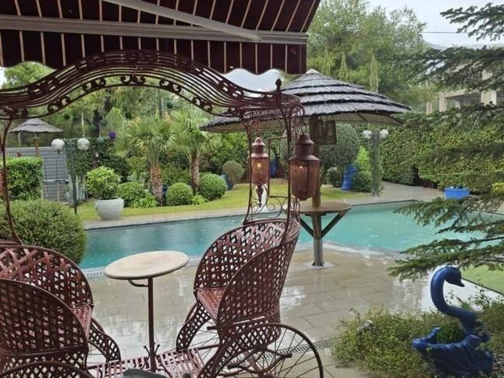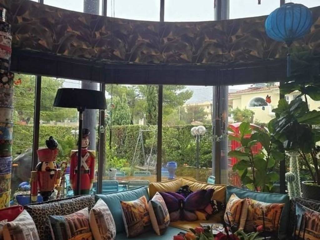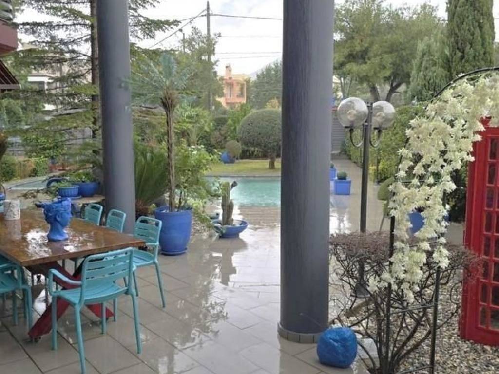 Unique, luxurious, modern, 4-storey villa with a pool and superbly landscaped gardens located in the residential area of Thrakomakedones (Acharnes Municipality). GROUND FLOOR: 170 sqm comprising spacious open-plan reception room with energy-efficient fireplace. Part of the lounge/dining area reaches 6.00 m. height surrounded by large triple-glazed windows allowing ample sunlight and views to the pool and the gardens. At the rear of the reception area there is an open state-of-the-art kitchen with lacquer, Italian built-in cabinets, integrated MIELE electric appliances and generous dining/family space. Exterior door leading out from the kitchen to the rear part of the plot. Guest room and W.C. area. Granite tile flooring throughout . Grand red–quartz staircase leading to the upper floor. 1st FLOOR: 140 sqm encompassing a master bedroom with en-suite bathroom and dressing room and two additional bedrooms with en-suite bathrooms. All bedrooms have access to terraces. Granite tile flooring throughout. Interior staircase or elevator leading to the attic. ATTIC: 70 sqm including two generous bedrooms, shower room and two terraces overlooking Mount Parnitha and the city of Athens. Granite tile flooring throughout. Staircase driving to walk-out basement. WALK-OUT BASEMENT: 160 sqm comprising open-plan room with fireplace, kitchen with fitted cupboards and electric appliances, bedroom, shower room, two storage rooms and boiler room. Granite tile flooring throughout. Exterior door leading to the rear garden. ADDITIONAL SPECIFICATIONS: Highly insulating aluminum double-glazed window frames, fly screens and electric roller shutters. Autonomous underfloor oil heating in all levels and ramp. Interior two-car parking space, oil/electric water heater, CCTV system, modern electric ceiling fans, A/C, audio and video door entry system. Economy electricity tarrif. 4-stop elevator, barbecue, electric awnings, heated pool (50 sqm), landscaped gardens with autonomous watering system. Plot area: 1,060 sqm. Electric devices and furniture are not included in the selling price. Proximity to bus stop, public schools and local amenities. Five km far from Suburban Railway, 5.5 km from National Road and 10 km from Attiki Odos. Nineteen km far from Athens city centre and 40 km from Athens Int. Airport. For more properties in the region and information on the area, please browse the website of the LOCAL ESTATE AGENCY: www.katraki.gr Mob.: (+30)-6974-895273