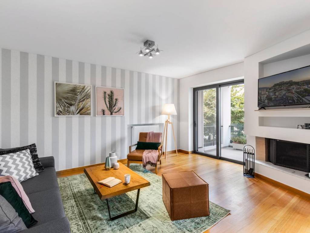 Excellent 90 sq.m. first-floor apartment featuring a beautiful living room with fireplace and a large veranda, an open-plan kitchen with built-in electrical appliances, 2 bedrooms, and 1 bathroom. The apartment also offers an underground parking space, storage room, security door, alarm system, A/C unit, wooden flooring, and autonomous heating.UNFURNISHED !!!