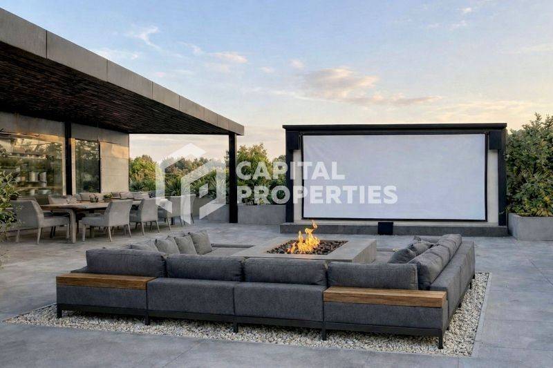 can accommodate a sophisticated lounge setting, a private summer cinema, a