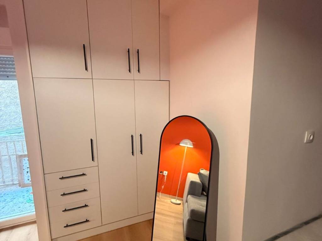 Luxury, fully renovated (2026) and furnished studio apartment for rent – 40 sq.m. A luxury, fully renovated (2026) and fully furnished 40 sq.m. studio apartment is available for rent, located in a central area of Corinth, ideal for a student, professional, or couple. The apartment has never been occupied before. The property features: • Separate living areas • Modern kitchen with brand-new, unused electrical appliances (electric cooker with hobs, extractor hood, illy X7 espresso machine) and a modern refrigerator • Comfortable sleeping area with a queen-size anatomical bed • Fully renovated bathroom with walk-in shower column and modern tiling • Wooden laminate flooring • Security entrance door with peephole • Brand-new aluminum window frames • Sliding insect screens • Air conditioning unit 18,000 BTU A++ • Electric fireplace / space heater • Modern furniture and 65’’ Smart TV with rotating mount • Brand-new modern wardrobes • Modern corner sofa with adjustable configuration • Excellent natural light • Balcony (2 sq.m.) • Loft space for storage • Low communal expenses • Quiet apartment building hosting offices and medical practices Located in the city center, with easy access to public transport and essential services. Just one block from the University and cafés. Only 10 minutes’ walk from Kalamia Beach. Ready for immediate occupancy – no additional expenses required.
