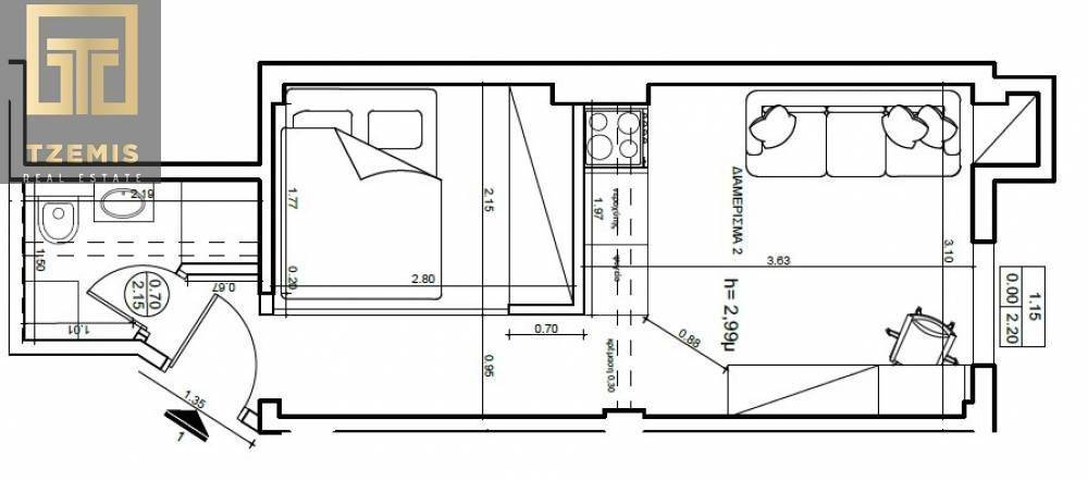 Arrianou Street: For sale, a front-facing studio apartment of 35 sq.m., on the 2nd floor, fully and luxuriously renovated.