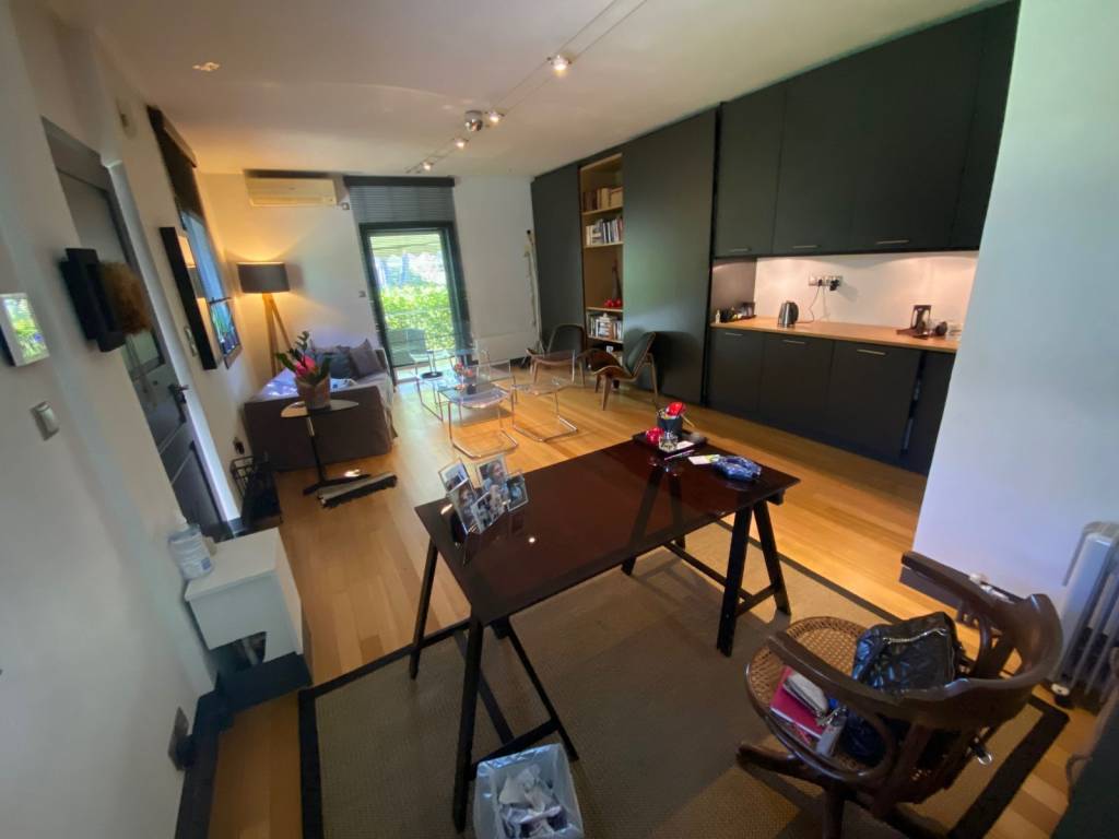 Modern small property for rent in the center of Kifisia, just 100 meters from the Electric Railway station. The apartment features an open-plan, functional layout with wooden floors that add warmth and elegance, ideal for comfortable everyday living. The property offers ample storage space with many built-in closets, a contemporary design, and a modern bathroom with a walk-in shower. Despite its central location, it is quiet and peaceful, and includes a private veranda as well as access to a large shared garden, creating a relaxing green environment. An ideal choice for those who wish to live in the heart of Kifisia, with immediate access to public transport, shops, and services, while enjoying the tranquility of a pleasant neighborhood.