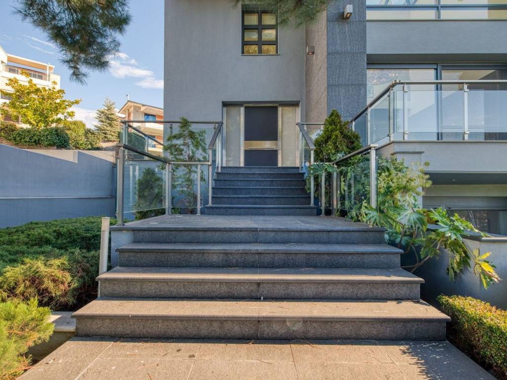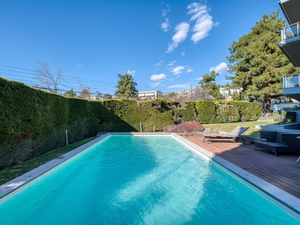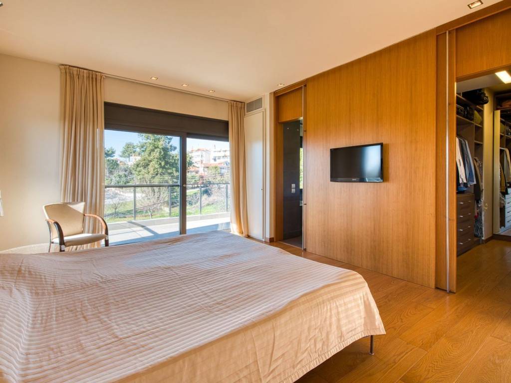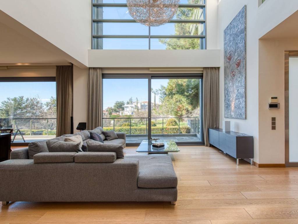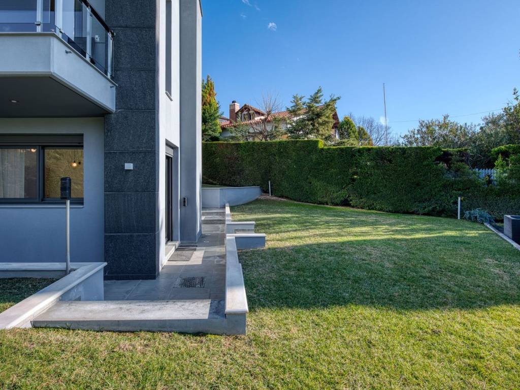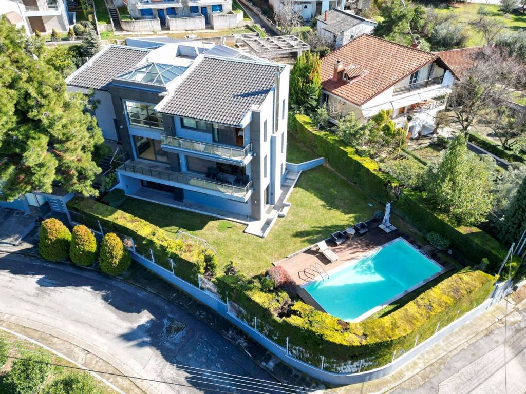 This is an exceptional, luxurious, organic smart detached house built in 2012, of high standards, located in a quiet and well-kept neighborhood, offering absolute privacy, security and modern quality of life. The residence is developed over three levels and incorporates advanced technologies and top-notch facilities, with a high-security system and comprehensive design that meets every need of a demanding family. From the main entrance, we are led to a large and comfortable reception area, where the living room with the fireplace creates a warm and elegant atmosphere, while next to it are the dining room, a room functioning as an office, a guest WC and a separate, fully functional kitchen offering privacy and ergonomics. The upper level is the main relaxation area, with three children's bedrooms equipped with built-in wardrobes, three bathrooms and an impressive master bedroom with a large dressing room and private bathroom, designed for absolute comfort and relaxation. On the ground floor, there is a fully autonomous apartment that includes a service room with its own bathroom, an additional master with a private bathroom, a gym area, a bathroom serving the pool area and an open-plan living room with a kitchen, ideal for guests or independent living. The property has a closed parking space for four cars, while externally it is surrounded by a large, beautifully landscaped garden with a pool, barbecue and playground, creating a high-level private recreational space. The technical features include a geothermal system, voltage stabilizer, central water softener, pressure regulator, alarm system with 72 beam sensors, electric awnings,and electric shutters, elements that enhance energy efficiency, security and daily comfort. This is a rare residence of high aesthetics and technological superiority, ideal for premium clients seeking luxury, functionality and a comprehensive level of modern living. 360° VR Tour available upon request. Location: Panorama is located east of Thessaloniki, at the foothills of Mount Chortiatis, at an altitude of 250 meters. Unique Features: Panorama, due to its fantastic location set within a beautiful forest and offering panoramic views of the entire Thermaic Gulf, is considered one of the most privileged areas in the broader region. It offers a plethora of high-standard and aesthetically unique residences. The area also has its own (municipal) summer cinema, swimming pool, and Olympic-standard gym. Panorama hosts three public schools, a high school, as well as many private schools of all levels. Accessibility: Panorama is only 14 kilometers from the center of Thessaloniki. Public transportation to the city center and other areas is provided by bus line 58 of O.A.S.TH. Investment Potential: Panorama maintains a high investment interest. It is a purely residential area for medium and high incomes, and in recent years there has been a significant increase in the construction of luxury homes and villas, a result of the country's socio-economic development until recently.