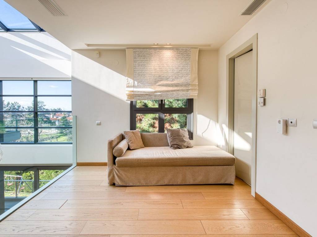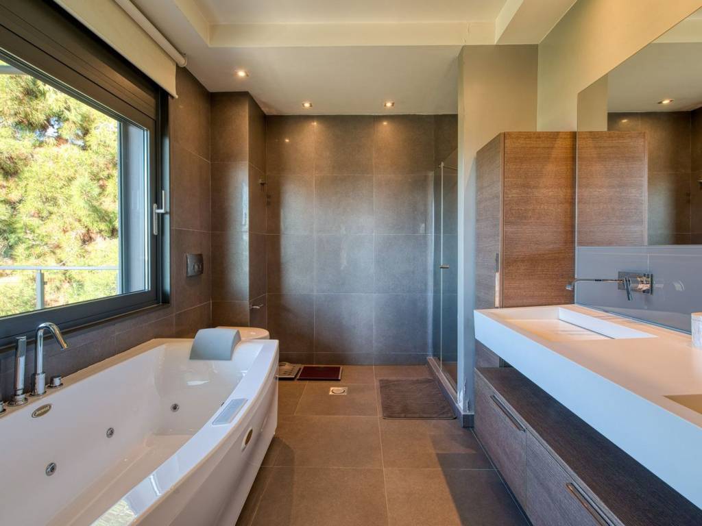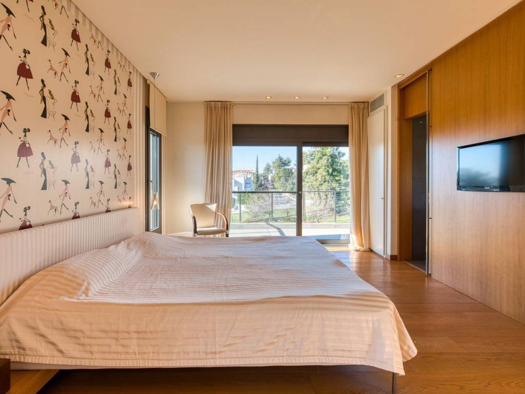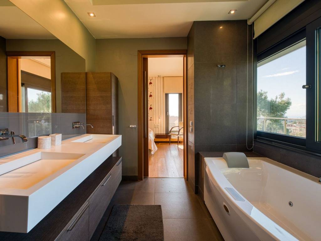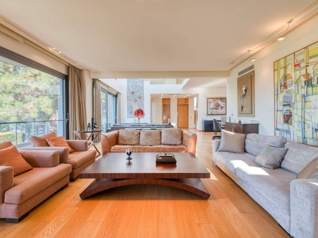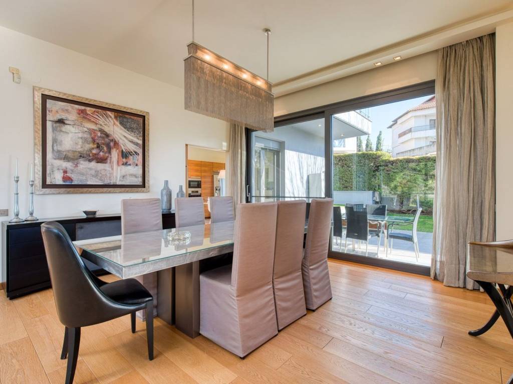This is an exceptional, luxurious, organic smart detached house built in 2012, of high standards, located in a quiet and well-kept neighborhood, offering absolute privacy, security and modern quality of life. The residence is developed over three levels and incorporates advanced technologies and top-notch facilities, with a high-security system and comprehensive design that meets every need of a demanding family. From the main entrance, we are led to a large and comfortable reception area, where the living room with the fireplace creates a warm and elegant atmosphere, while next to it are the dining room, a room functioning as an office, a guest WC and a separate, fully functional kitchen offering privacy and ergonomics. The upper level is the main relaxation area, with three children's bedrooms equipped with built-in wardrobes, three bathrooms and an impressive master bedroom with a large dressing room and private bathroom, designed for absolute comfort and relaxation. On the ground floor, there is a fully autonomous apartment that includes a service room with its own bathroom, an additional master with a private bathroom, a gym area, a bathroom serving the pool area and an open-plan living room with a kitchen, ideal for guests or independent living. The property has a closed parking space for four cars, while externally it is surrounded by a large, beautifully landscaped garden with a pool, barbecue and playground, creating a high-level private recreational space. The technical features include a geothermal system, voltage stabilizer, central water softener, pressure regulator, alarm system with 72 beam sensors, electric awnings,and electric shutters, elements that enhance energy efficiency, security and daily comfort. This is a rare residence of high aesthetics and technological superiority, ideal for premium clients seeking luxury, functionality and a comprehensive level of modern living. 360° VR Tour available upon request. Location: Panorama is located east of Thessaloniki, at the foothills of Mount Chortiatis, at an altitude of 250 meters. Unique Features: Panorama, due to its fantastic location set within a beautiful forest and offering panoramic views of the entire Thermaic Gulf, is considered one of the most privileged areas in the broader region. It offers a plethora of high-standard and aesthetically unique residences. The area also has its own (municipal) summer cinema, swimming pool, and Olympic-standard gym. Panorama hosts three public schools, a high school, as well as many private schools of all levels. Accessibility: Panorama is only 14 kilometers from the center of Thessaloniki. Public transportation to the city center and other areas is provided by bus line 58 of O.A.S.TH. Investment Potential: Panorama maintains a high investment interest. It is a purely residential area for medium and high incomes, and in recent years there has been a significant increase in the construction of luxury homes and villas, a result of the country's socio-economic development until recently.